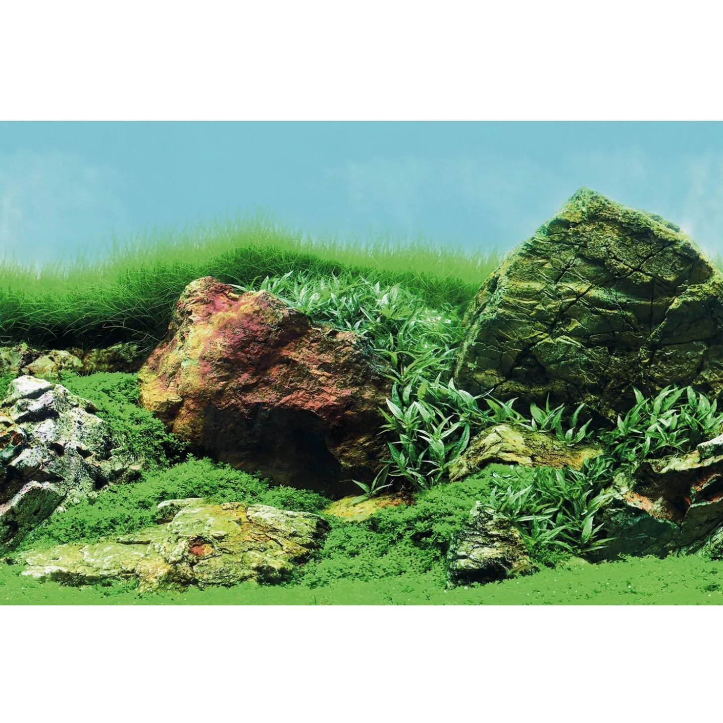 Het unieke aan de Deco Poster is dat deze aan twee zijden bedrukt is. De ene kant bevat een groen landschap met boomwortels en de andere zijde een groen landschap met rotsen, het ligt er maar net aan wat je mooier vindt en welke kant het beste past bij de natuurlijke habitat van je vissen. Deze poster heeft een afmeting van 60 x 30 cm maar is gemakkelijk op maat te knippen of te snijden zodat hij perfect in jouw aquarium past.