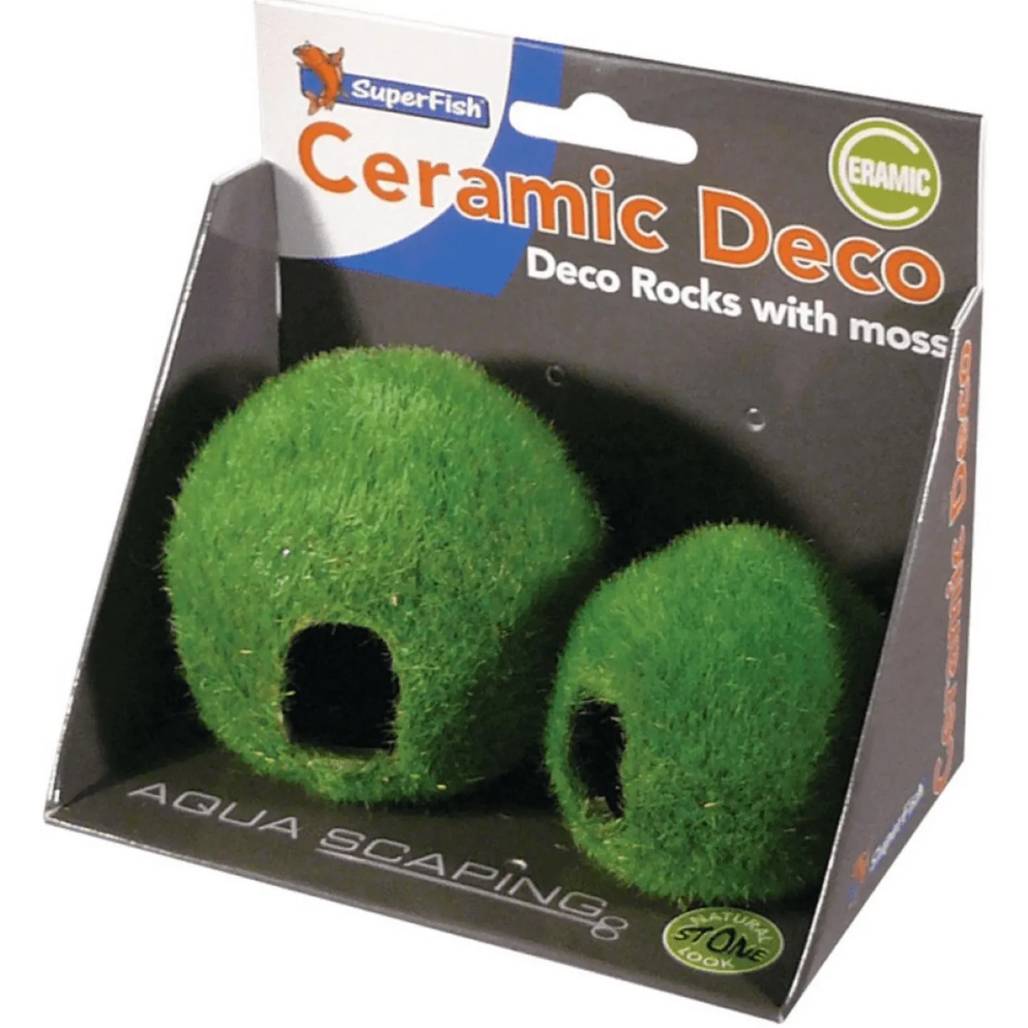 Vissen hebben beschutting nodig in hun aquarium, hier kunnen ze zich verstoppen en voelen ze zich veilig. De Ceramic Deco Rocks with Moss van Superfish bevat 2 keramische schuilplaatsen voor je aquarium- of terrariumbewoners, met aan de buitenkant een laag kunstmos. De schuilplaats is uiteraard 100% veilig voor de vissen en planten in je aquarium.
