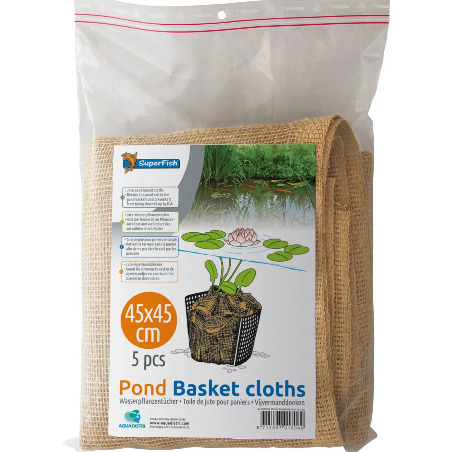 Het Jute Vijverdoek van Superfish zorgt ervoor dat de aarde in je vijver bijeen wordt gehouden, het houdt de vijveraarde in waterplantmandjes vast. Met het dichtknopen van de vijvermanddoekjes wordt het loswoelen door vissen en zweven van vijveraarde in de vijver voorkomen. De doeken zijn gemaakt van natuurlijk materiaal.