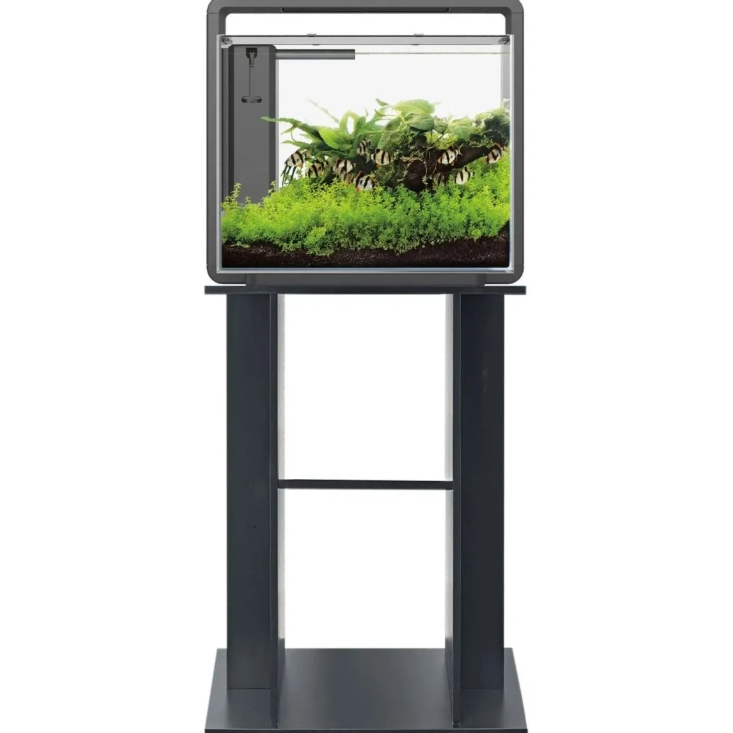 De kast heeft een modern, zwart uiterlijk en past daarmee in vrijwel elke (woon)kamer. Met een afmeting van 47 x 25 x 78 centimeter staat je aquarium op een mooie kijkhoogte. Er zijn ook opbergmanden beschikbaar voor dit meubel, waar je je aquariumbenodigdheden in kan opbergen.