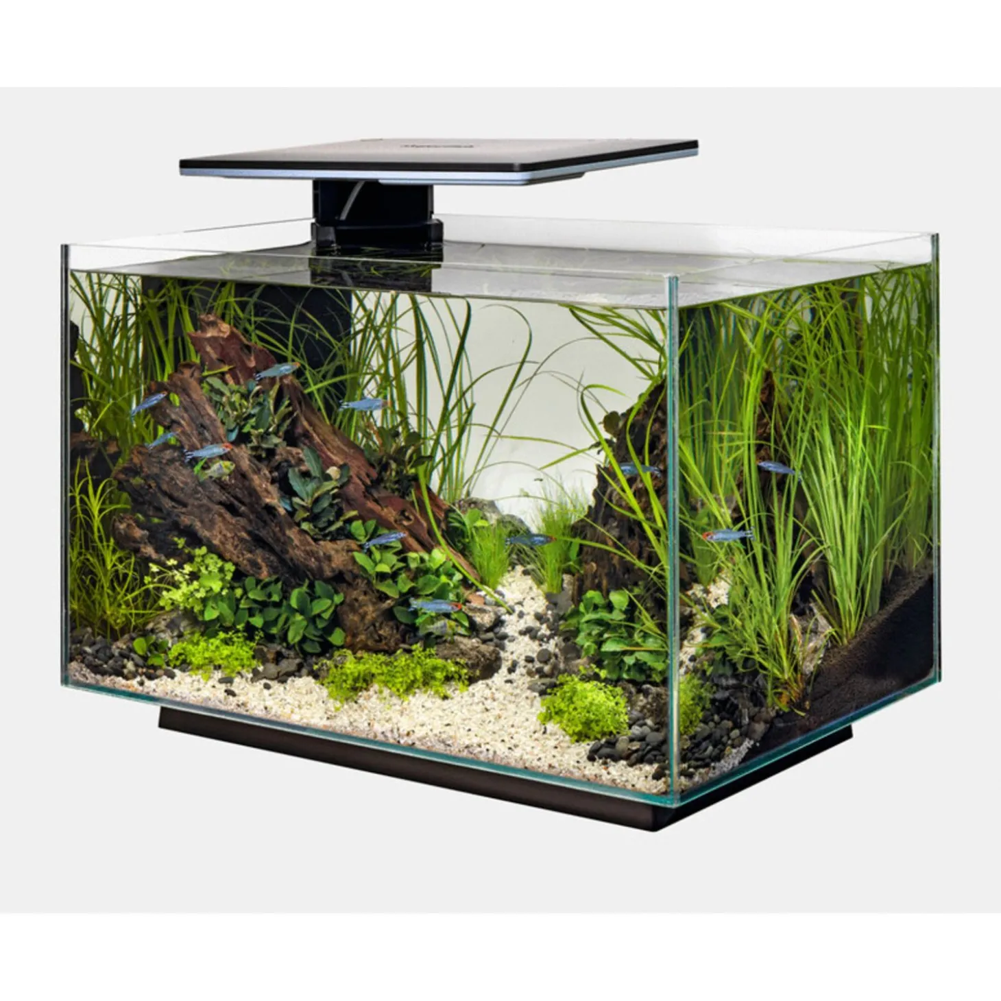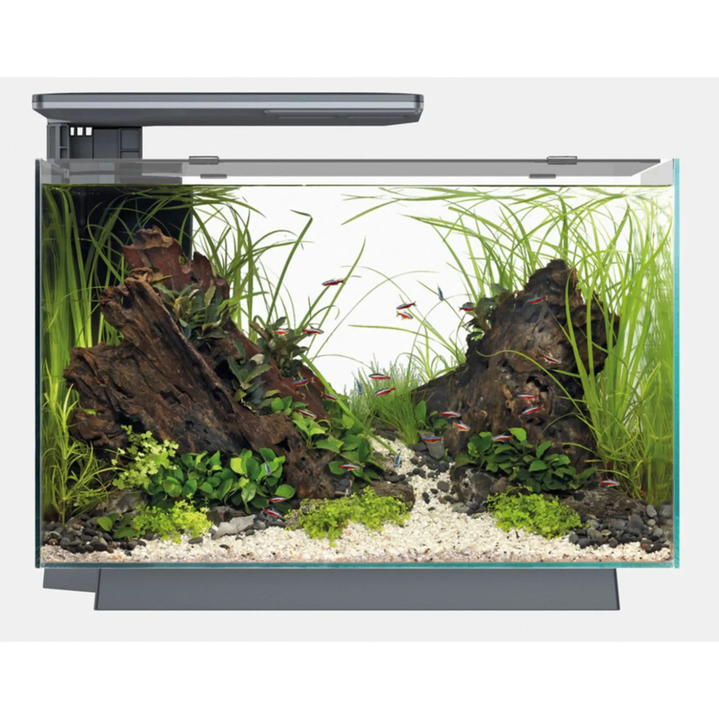 - Inhoud 67 liter, geschikt voor koudwater en tropische vissen, dankzij de geïntegreerde ruimte voor optionele verwarmer. verkrijgbaar in de kleuren wit en zwart, vervangcartridges zijn verkrijgbaar bij uw dealer.