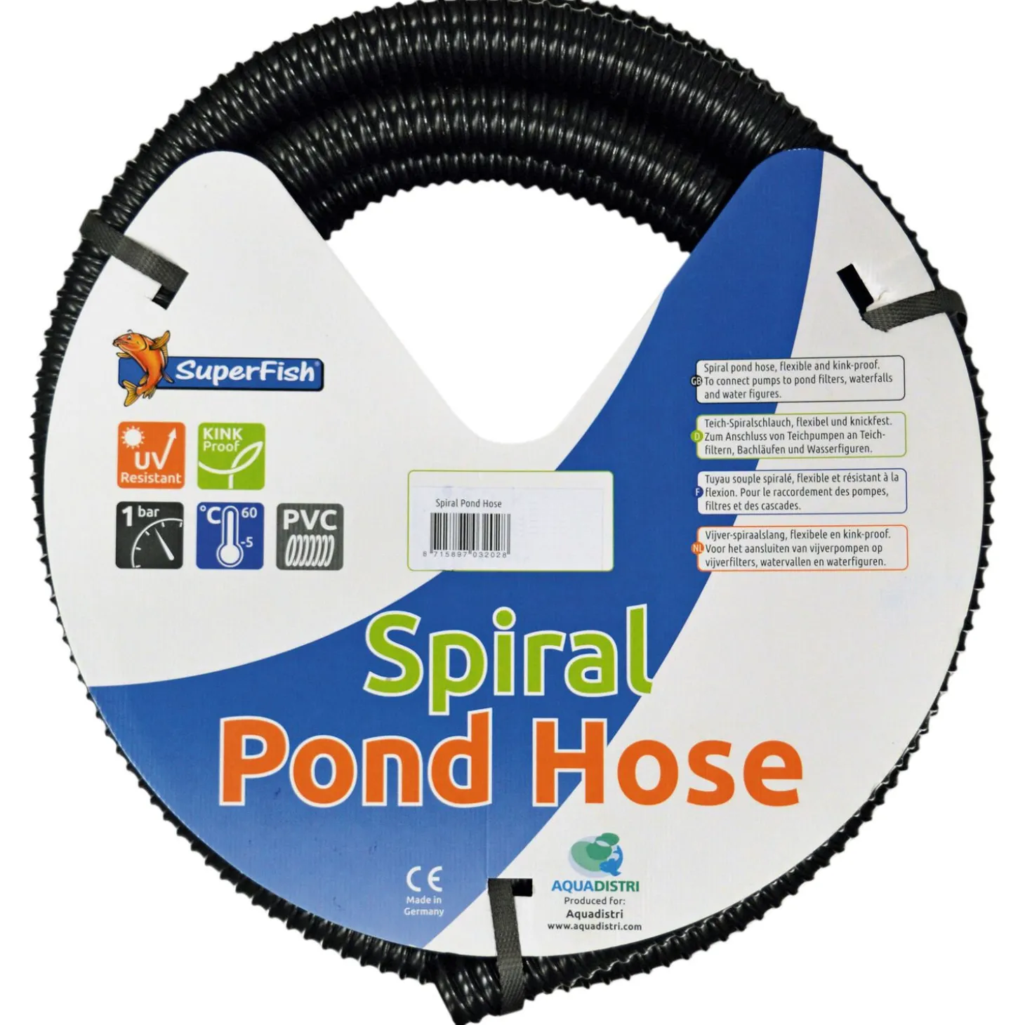 De Spiraalslang van Superfish is een speciaal versterkte slang die niet kan knikken. Hierdoor is de slang ideaal voor het aansluiten van vijverpompen op vijverfilters, watervallen en waterfiguren. De slang is gemaakt van PVC en is UV-resistent. Je kan de slang bestellen in verschillende diameters en lengtes.