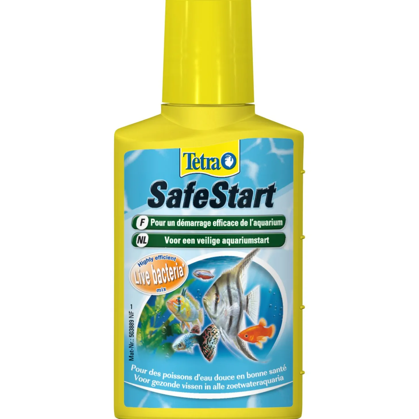 Een goed begin is het halve werk. Met de SafeStart van Tetra kan je direct je vissen een nieuw thuis bieden. De levende bacteriën in de SafeStart creëren onmiddellijk een biologische actieve leefomgeving. Het versnelt de rijping direct na het inrichten van een nieuw aquarium. Hierdoor voorkom je een giftige nitrietpiek en vissterfte. De Safe start verlaagt schadelijke ammoniak- en nitrietgehaltes. Je zorgt met de SafeStart voor gezonde vissen in alle zoetwateraquaria. Je gebruikt de Safe start voor het plaatsen van nieuwe vissen, na behandeling met geneesmiddelen, waterverversingen en verlies van bacteriën.