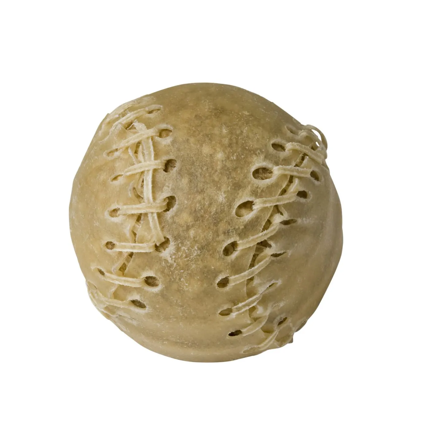Wist je dat kauwen van ontzettend groot belang is bij je trouwe viervoeter? Ze vinden het niet alleen lekker maar het draagt ook bij aan een gezonde gebitsverzorging. De Kauwhonkbal van Timo is een 100% natuurlijk kauwbot. Een keer eens niet de standaard vorm maar in een leuke honkbal-vorm! Deze honkbal is gemaakt van samengeperst runderhuid, wat vervolgens netjes is afgevlakt in een mooie gladde honkbal-vorm. Met kleine stukjes runderhuid zijn er details toegevoegd. Dit is een stevig kauwbot maar wordt, naarmate er op gekauwd wordt, zachter. Het speeksel trekt in de runderhuid en kan vervolgens worden afgeknauwd. Wanneer je hond het bot even links laat liggen droogt de huid weer op en geeft je hond opnieuw veel kauwplezier! Door de ronde vorm krijgt dit bot een extra moeilijkheidsgraad als het aankomt op kauwen.