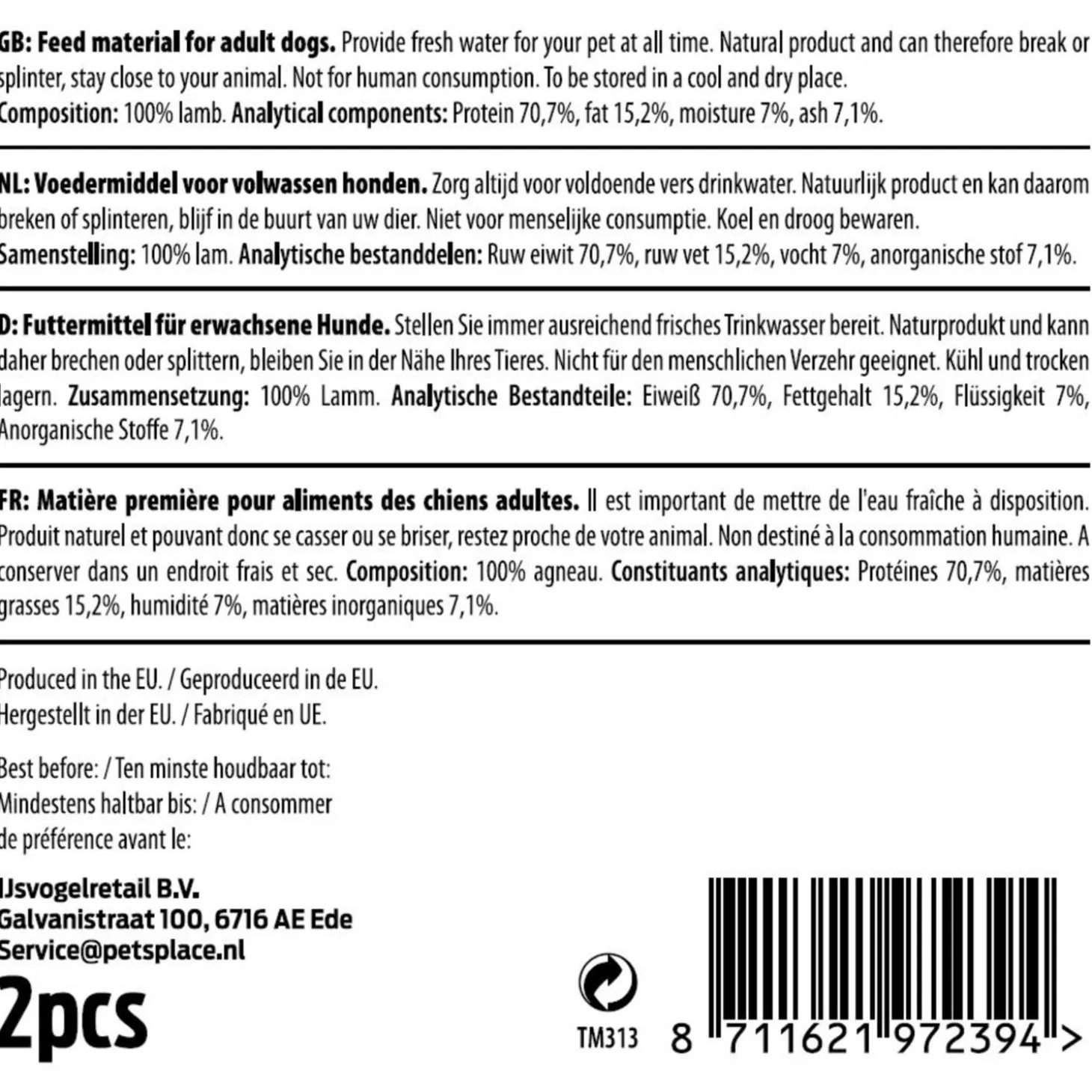 Het Timo Lamsbot bevat 2 stukken. Geschikt voor honden ouder dan 3 maand.