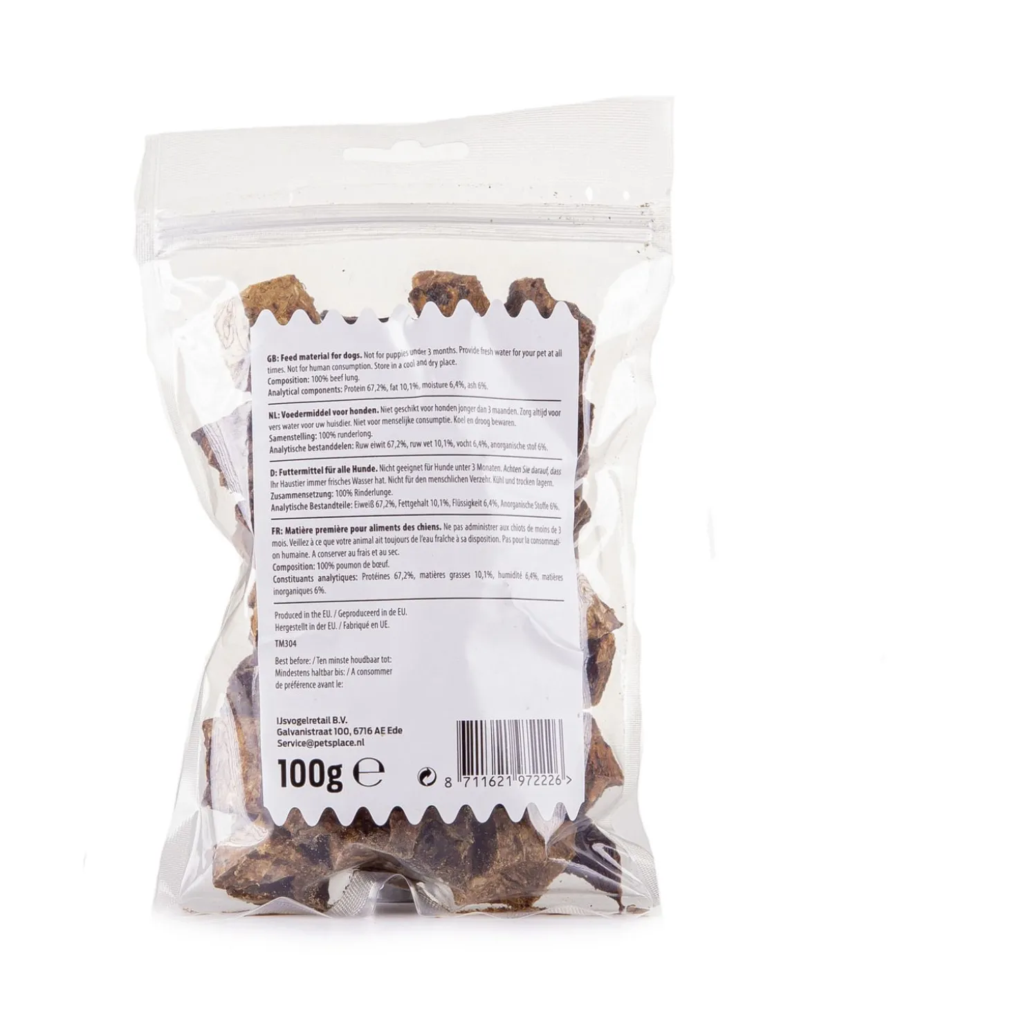 De snack is gemaakt van 100% verse runderlong, zonder andere toevoegingen. Met dus maar 1 eiwitbron , ideaal voor honden die gevoelig zijn voor bepaalde dierlijke eiwitten. De snack is goed verteerbaar en ondersteunt de spijsvertering. Je voorziet je hond met Timo van een gezonde en natuurlijke snack, die ook nog eens is geproduceerd in Europa.