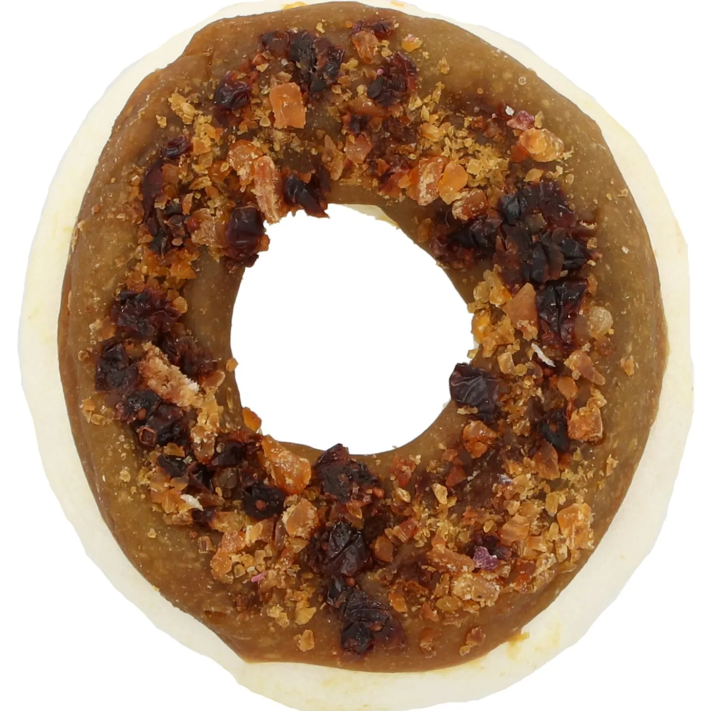 | Samenstelling | Kip 33%, Runderhuid 50%, Plantaardig Eiwit 3.5%, Bloemmeel 3%, Cranberry1.5%, Zoete Aardappel 3%, Spinaziepoeder 1%, Glycerine 3%, Sorbitol 1.6%, Zout 0.3%, Kaliumsorbaat 0.1% |