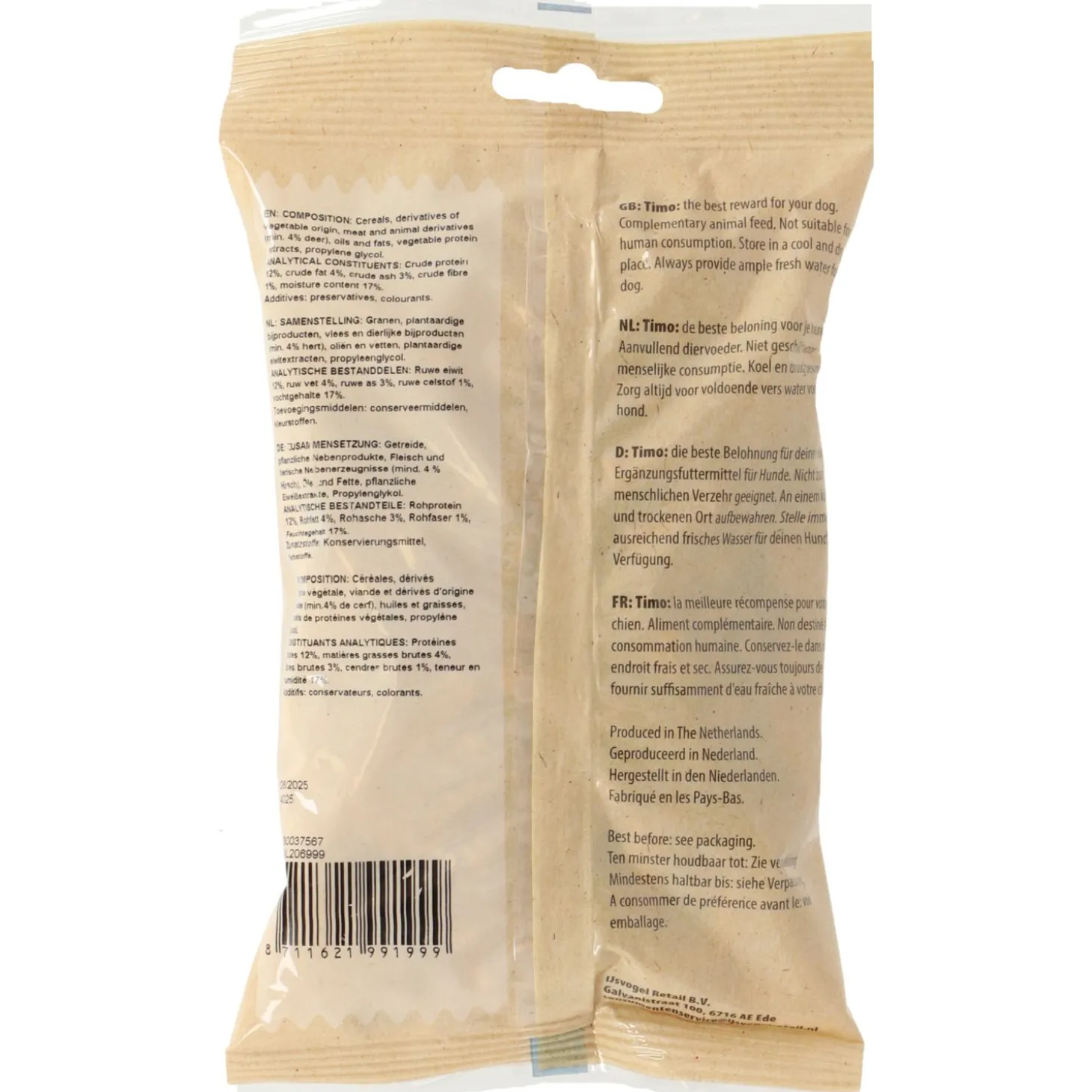 | Samenstelling | Samenstelling: granen, plantaardige bijproducten, vlees en dierlijke bijproducten (min. 4% hert), oliën en vetten, plantaardige eiwitextracten, propyleenglycol. |