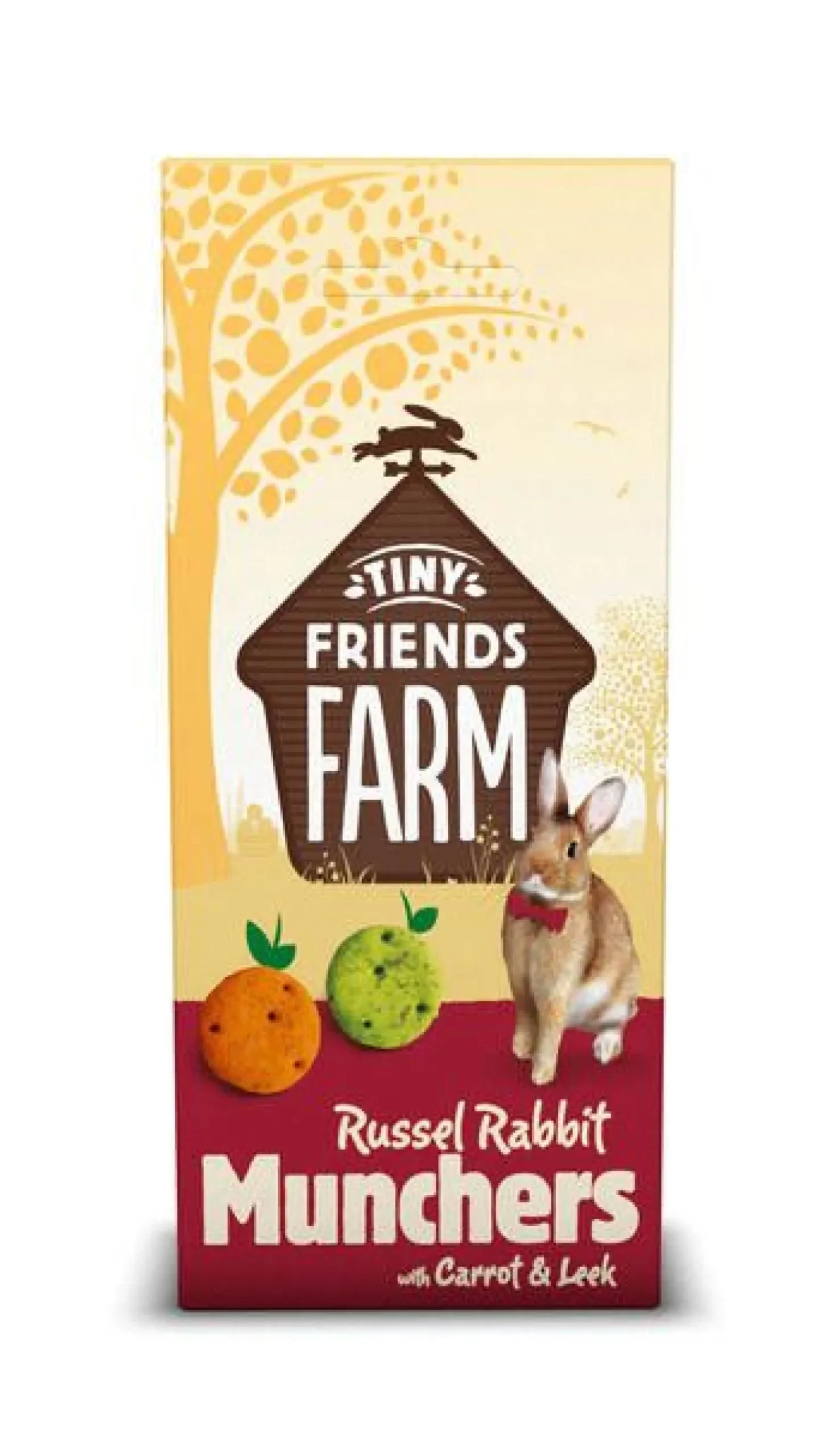 Naast de dagelijkse voederkorrels mag je konijn ook weleens verwend worden met een lekker tussendoortje. Tiny Friends Farm Russel Rabbit Munchers zijn een voedzame traktatie voor je konijn. De koekjes zijn ook geschikt voor chinchilla’s, cavia’s, gerbils, ratten en muizen.