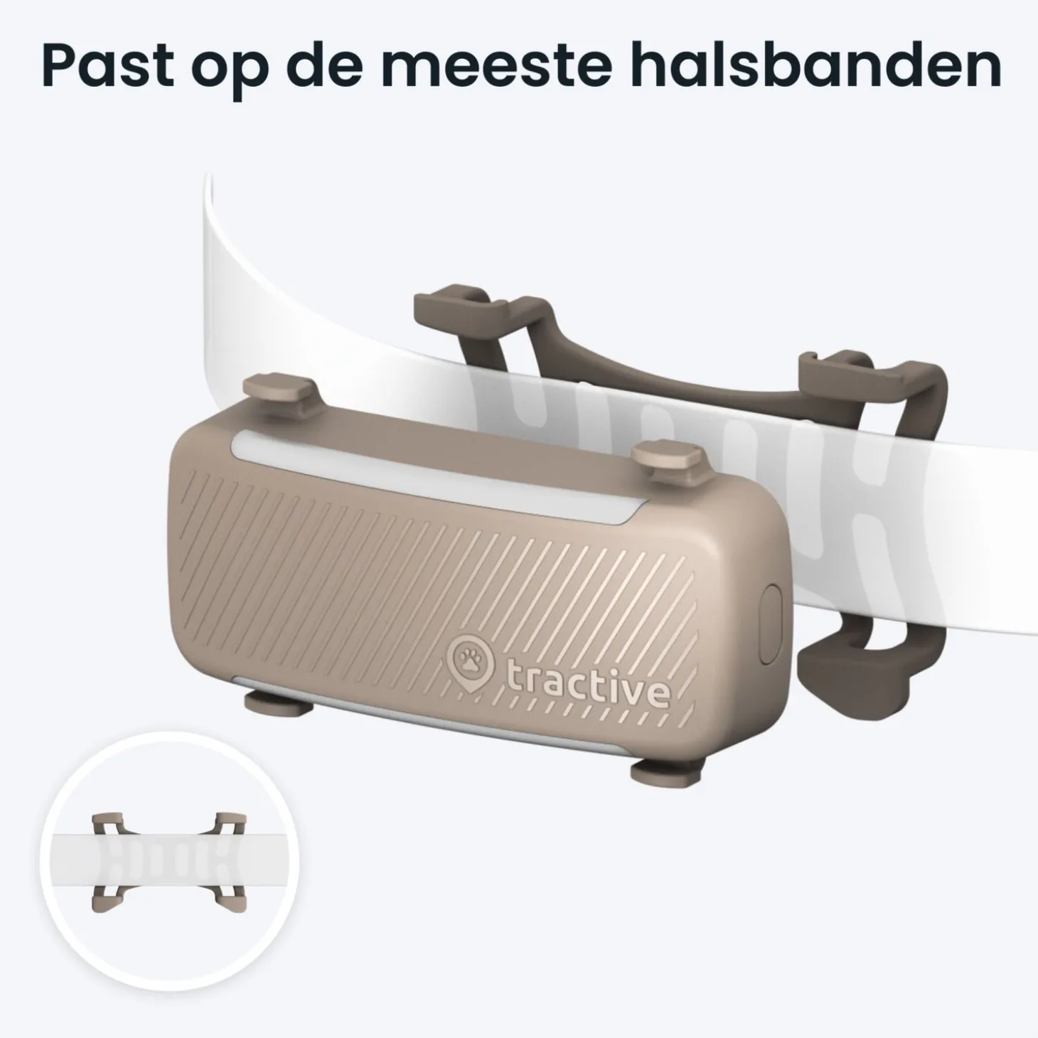 - Bevestig de GPS-tracker veilig aan de halsband of het tuigje van je hond