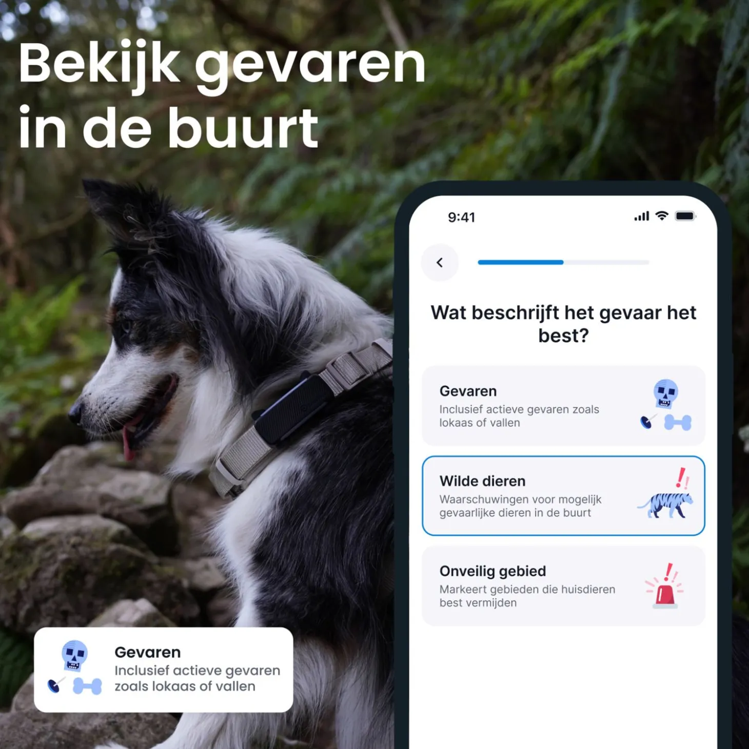 - Stel virtuele omheiningen in om direct een melding te krijgen als je hond een veilige zone verlaat
