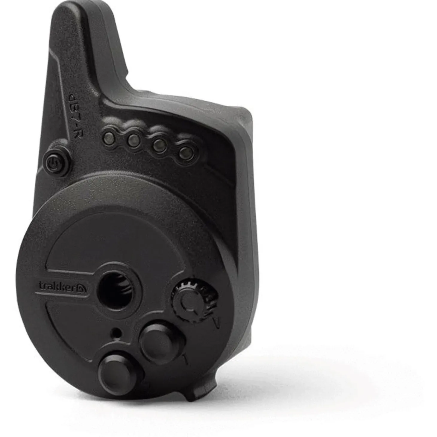 De db7-R ontvanger kan naadloos gekoppeld worden met de Trakker dB7-R-beetmelders. Deze ontvanger is ontworpen om te voldoen aan de hoogste normen op het gebied van prestaties, betrouwbaarheid en vooral gebruiksgemak, waardoor de dB7-R range de perfecte no-nonsense metgezel is voor de doorgewinterde karpervissers. Trakker is ervan overtuigd dat je bij gebruik voor een sessie geen instructiehandleidingen hoeft te raadplegen, installatievideo’s opnieuw hoeft te bekijken of ingewikkelde knopvolgordes hoeft te leren om ze te gebruiken. Net als Trakkers beetmelders is de ontvanger voorzien van een PPS (Power-On Protection System), dat onbedoeld inschakelen en verspilling van batterijvermogen voorkomt. De stevige ABS-behuizing en batterijcompartiment zorgen ervoor dat deze ontvanger zelfs de meest veeleisende omstandigheden kan weerstaan. De digitale schakeling en interne componenten die weerbestendig zijn, zorgen er bovendien voor dat deze ontvanger betrouwbaar presteert onder alle omstandigheden. De ingebouwde SRT (Sync-connect Receiver Technology) is ontworpen voor signaaloptimalisatie over lange afstanden en obstakels. Deze geavanceerde technologie zorgt ervoor dat je altijd een sterk en betrouwbaar signaal krijgt van je beetmelders. Verbind en update eenvoudig beetmelders, 4 per kanaal (16 in totaal), en pas je instellingen aan je eigen voorkeuren aan. Bovendien worden de alarmtoon en LED-kleur automatisch bijgewerkt op de ontvanger wanneer ze worden gekoppeld aan de beetmelders, en de ontvanger heeft een ingebouwd geheugen waarmee je de batterijen in de beetmelders en de ontvanger zelf kunt verwisselen zonder ze opnieuw te hoeven programmeren. De Tru-tone cone speaker zorgt voor een luide frequentie wanneer dat nodig is, en Trakkers D-Vibe-trillingsinstelling zendt een puls per pieptoon uit in zowel hoorbare als stille modus. De LER-functie (Last Event Recall) geeft de laatste gebeurtenis aan die naar de ontvanger is verzonden, zodat je nooit iets mist, zelfs als je ’s nachts een beetje traag wakker wordt bij een indicatie. De geïndexeerde volumedraaiknop (8 volumestanden, inclusief stil) zorgt ervoor dat je het geluidsniveau naar wens kunt aanpassen; deze functie is hoorbaar op de ontvanger. Een waarschuwing dat de batterij bijna leeg is, zorgt ervoor dat je altijd op de hoogte bent van je batterijniveau. De ontvanger geeft via LED-flitsen aan welke beetmelder bijna leeg is en of de eigen batterij bijna leeg is. Het ergonomische, op zichzelf staande ontwerp maakt het gemakkelijk te gebruiken, en zoals de naam al doet vermoeden, staat het op zichzelf op je bivvy-tafel, emmerdeksel of elk ander plat oppervlak waarop je besluit het op te zetten. Je kunt hem ook overal mee naartoe nemen met het meegeleverde koord. De ontvanger krijgt hetzelfde vermogen als de beetmelder en heeft een enkele PP3 9V-batterij nodig.