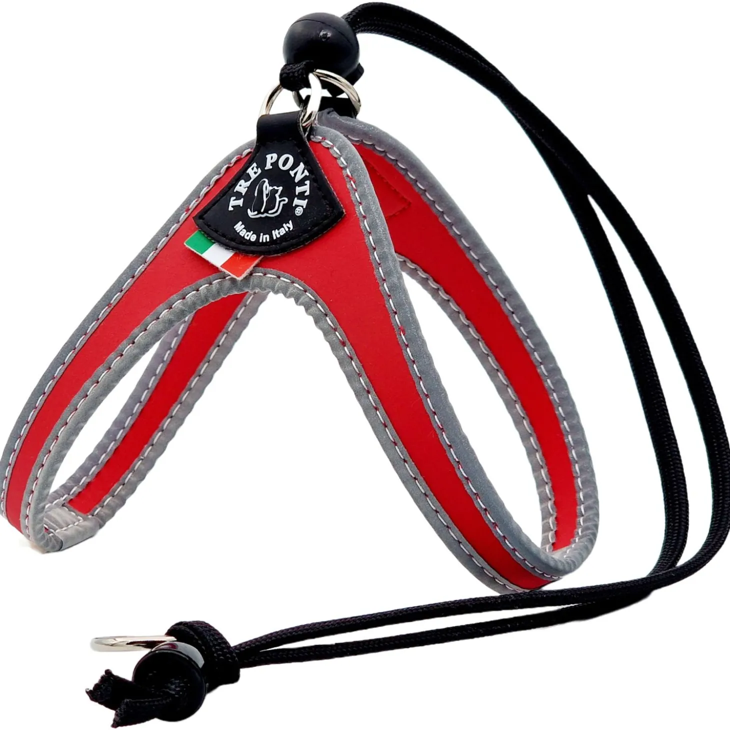 Wanneer je op zoek bent naar een fijn, nieuw tuig voor je hond, wil je natuurlijk dat comfort en kwaliteit hoog in het vaandel staan. Met Tre Ponti ben je aan het juiste adres. Tre Ponti is een Italiaans merk dat kwaliteit en een comfortabele pasvorm serieus neemt. Alle tuigen zijn ontworpen en handgemaakt in Italië. Het Liberta Reflective tuigje is speciaal voor honden van kleinere rassen, pups en katten. Dit tuig is voorzien van een uniek en innovatief sluitsysteem met koord.