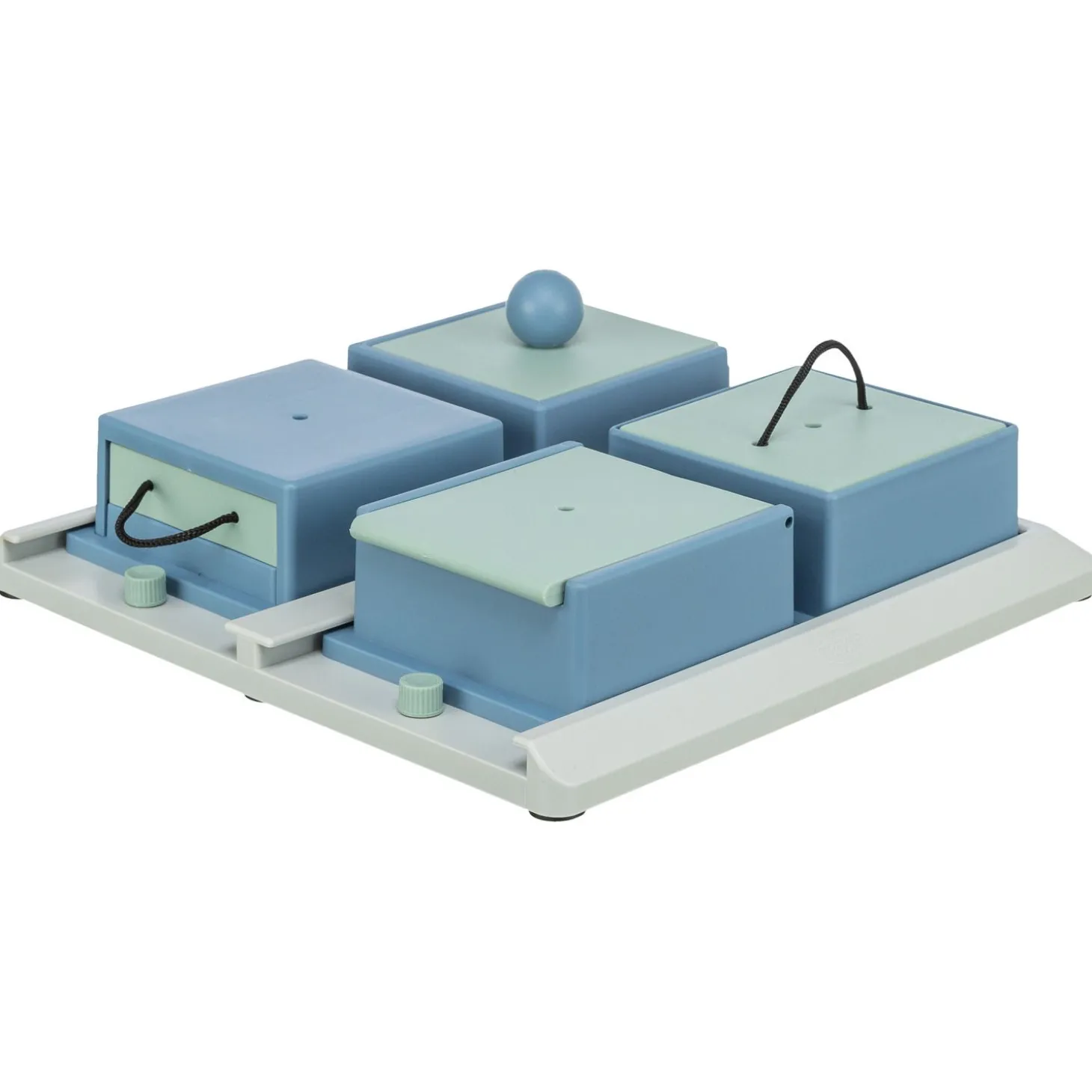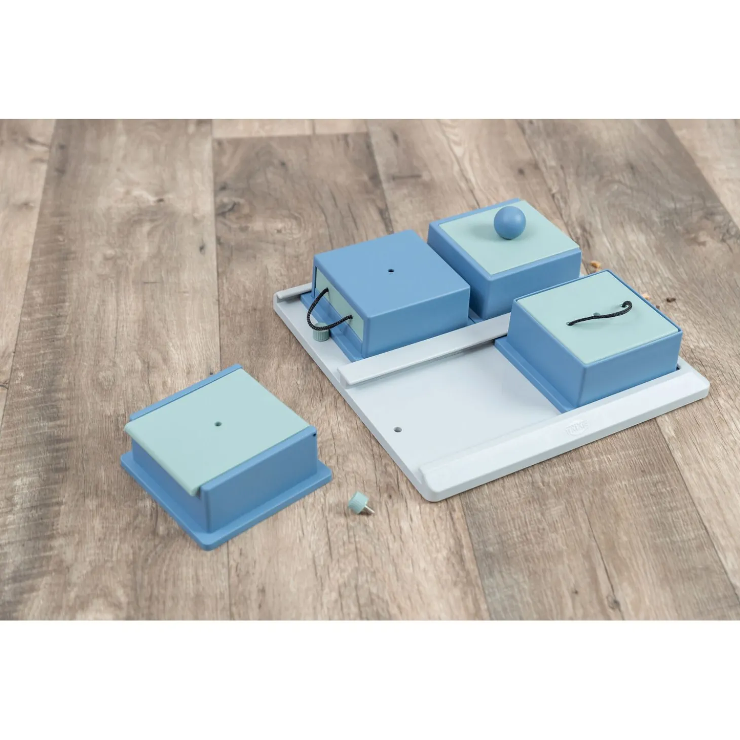 De Dog Activity Poker Box 1 is wit met blauw van kleur en is 31 x 31 cm groot.