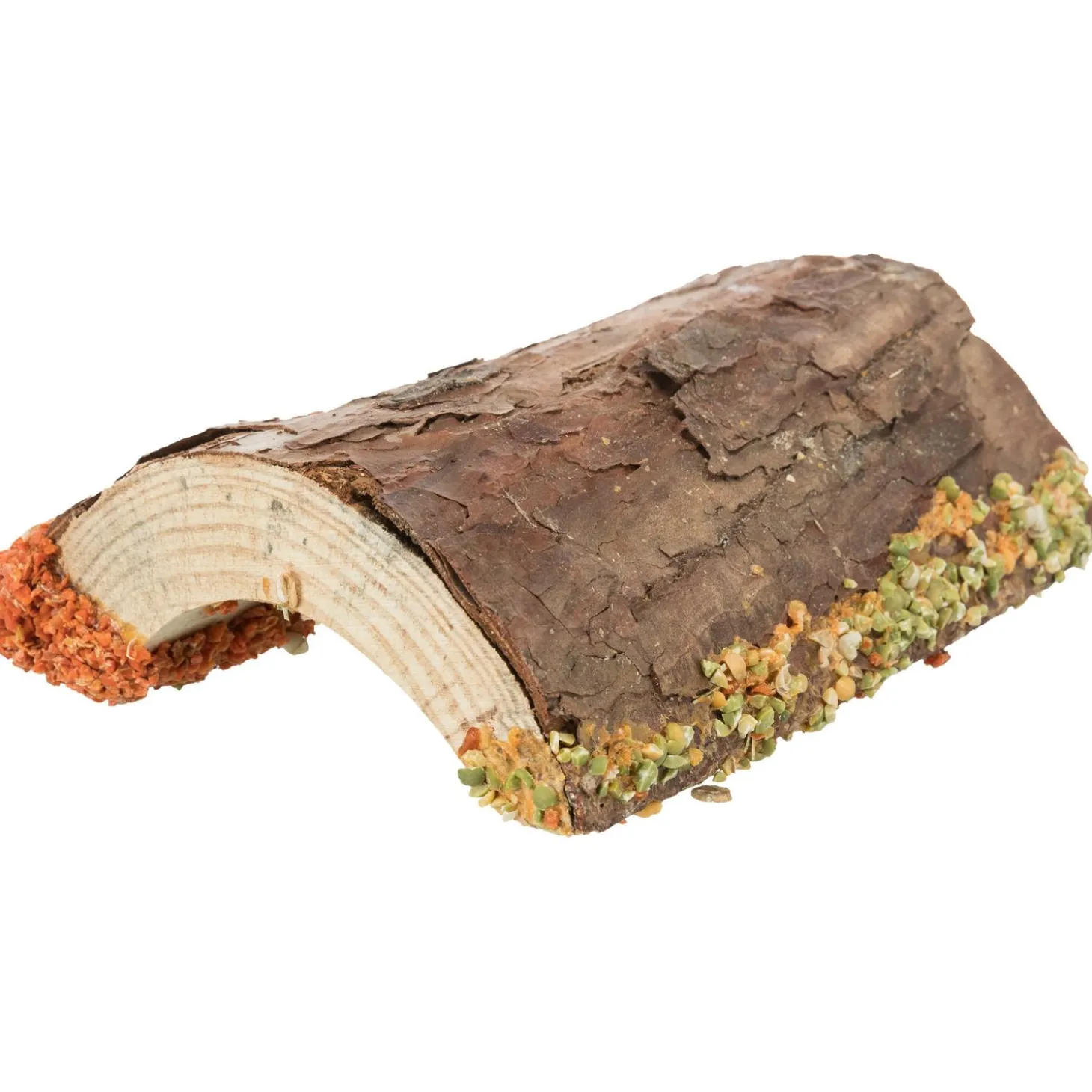 De brug is gemaakt van schorshout en is aan de buitenkant bedekt met gedroogde groenten en noten. Alle ingrediënten zijn 100% natuurlijk en bevatten geen toegevoegde suikers. Dat maakt deze multifunctionele brug een must have voor jouw knaagdieren verblijf!