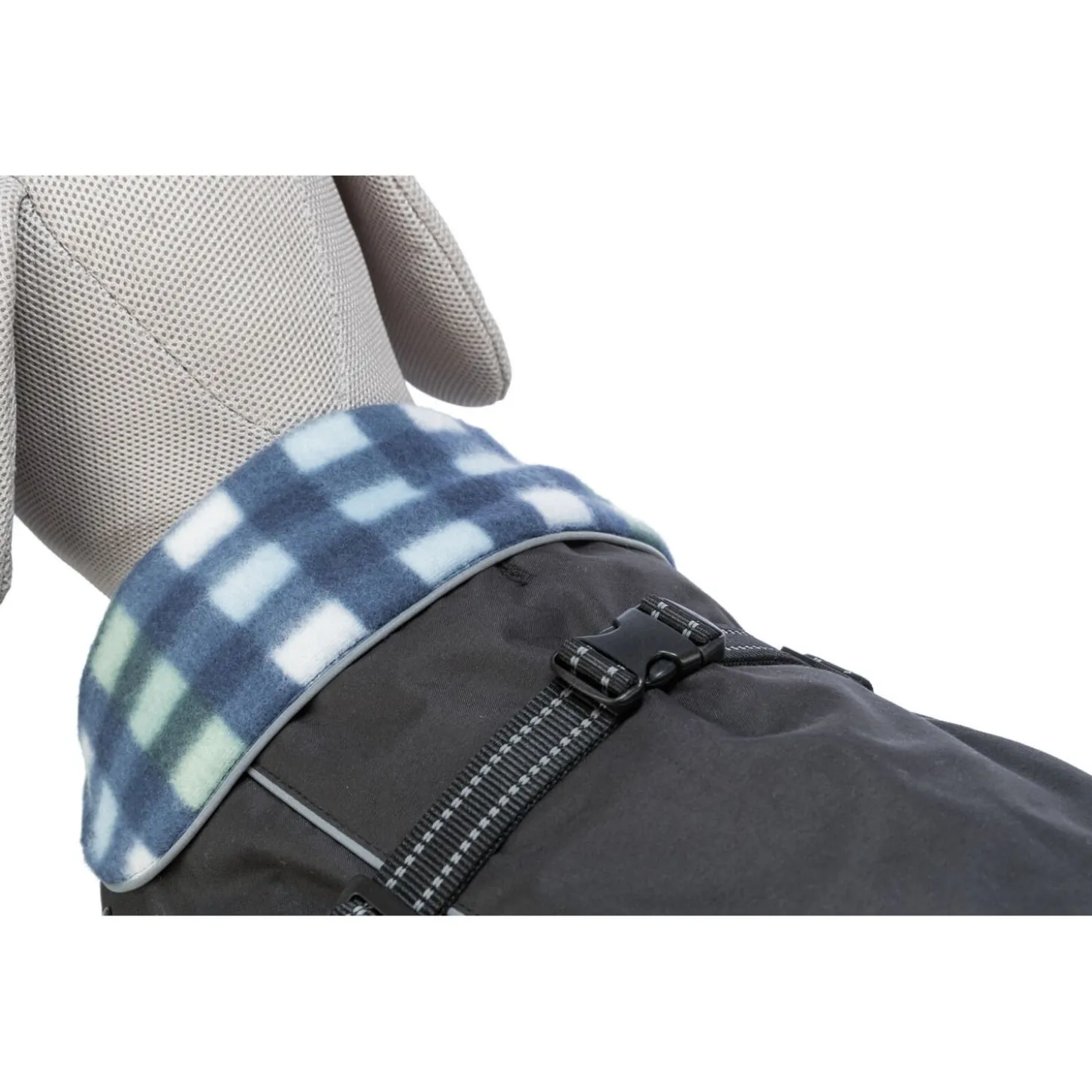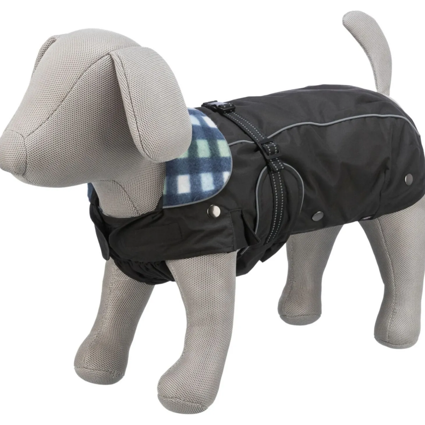 De achterkant van de jas blijft goed op z’n plaats zitten dankzij de verstelbare beenlussen voor de achterpoten. De Rouen is zowel waterafstotend als winddicht en is daardoor ideaal voor de slechtere weersomstandigheden. Trixie geeft de jas een warmtescore van 2 van 4. Niet geschikt voor koude wintertemperaturen, maar wel een fijne jas voor guurder herfstweer. De Rouen is op 30 graden te wassen.