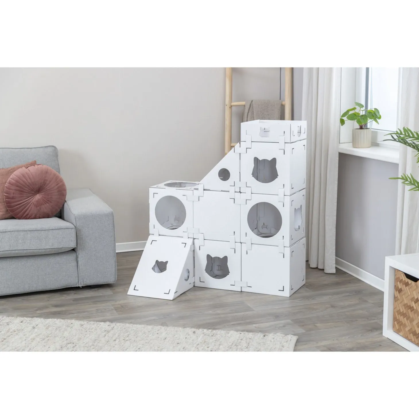 - Kartonnen kattenmeubelsset bevat: 4 kubussen, 1 brug, 1 mandjealle onderdelen kunnen afzonderlijk worden verbondenkan gecombineerd worden met # 48061FSC gerecycled”
