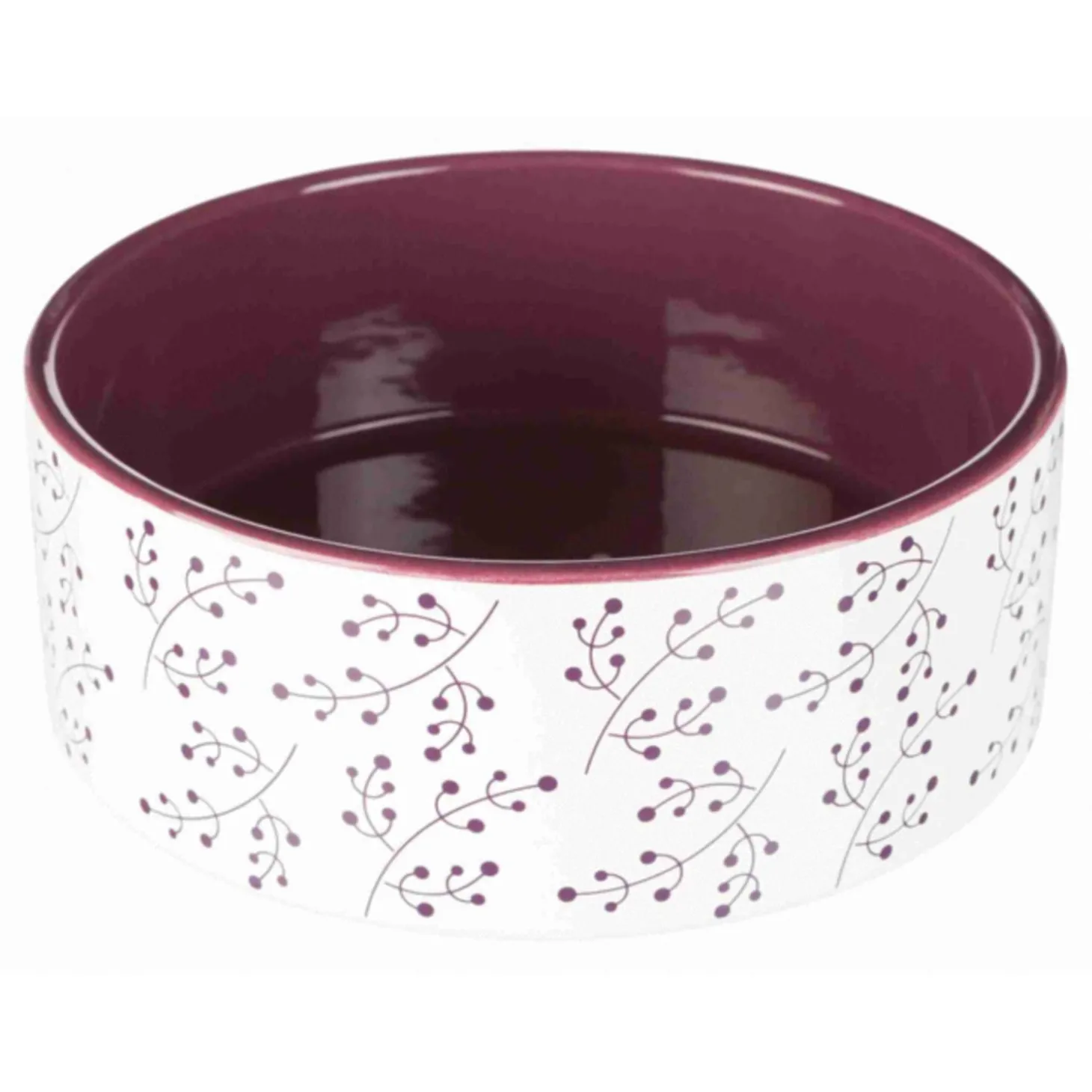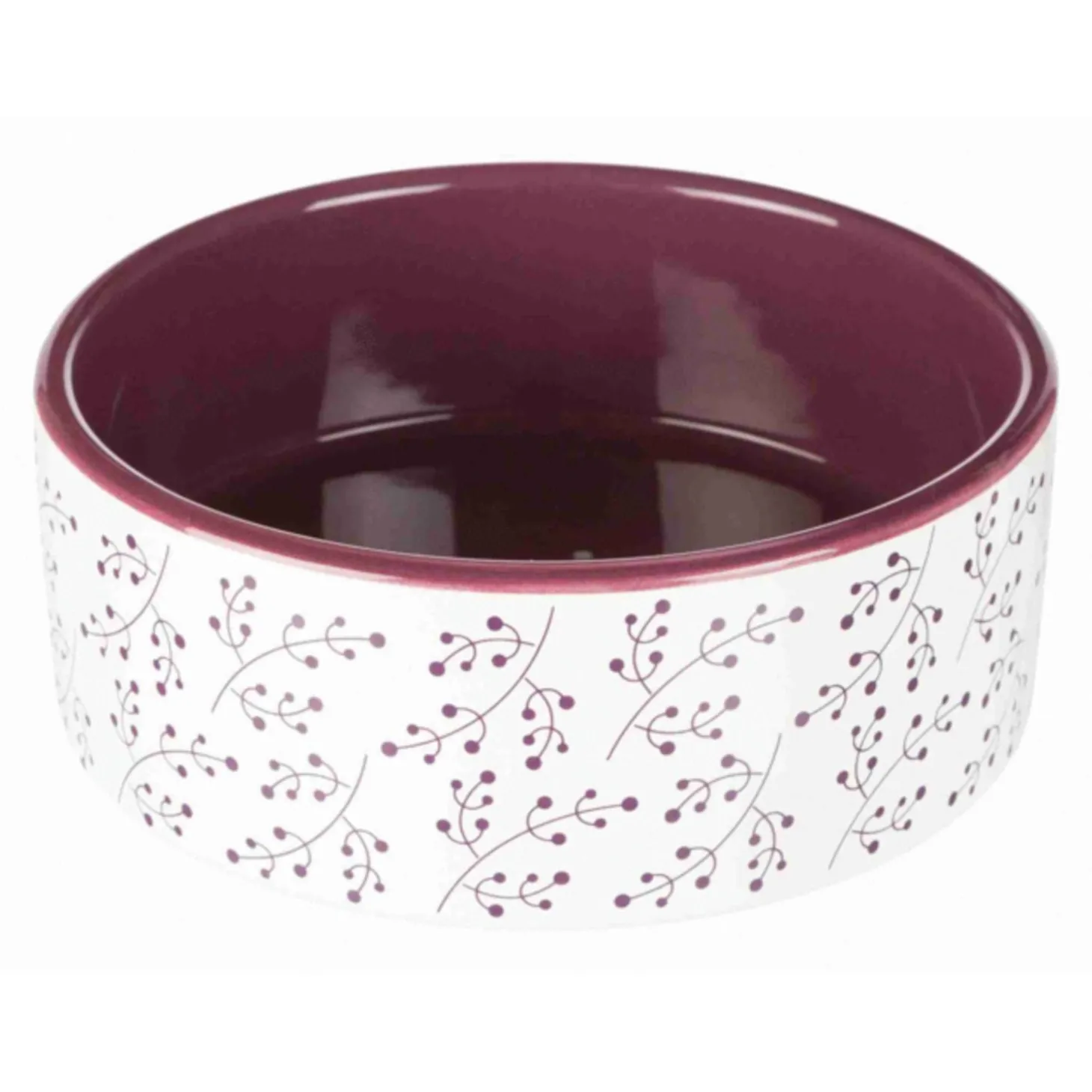 De Trixie voerbak bloemmotief Keramiek wit/bes 12 cm 300 ml is een keramische voerbak met contrastkleuren en bloemmotief, eenvoudig te reinigen. Deze voerbak is gemaakt van glad afgewerkt keramiek van zware kwaliteit. Naast zeer degelijk maakt dit deze voerbak eenvoudig te reinigen door het gladde oppervlak. De voerbak is uitgevoerd in wit met een rode binnenkant en bloemmotief in contrasterende kleur.
