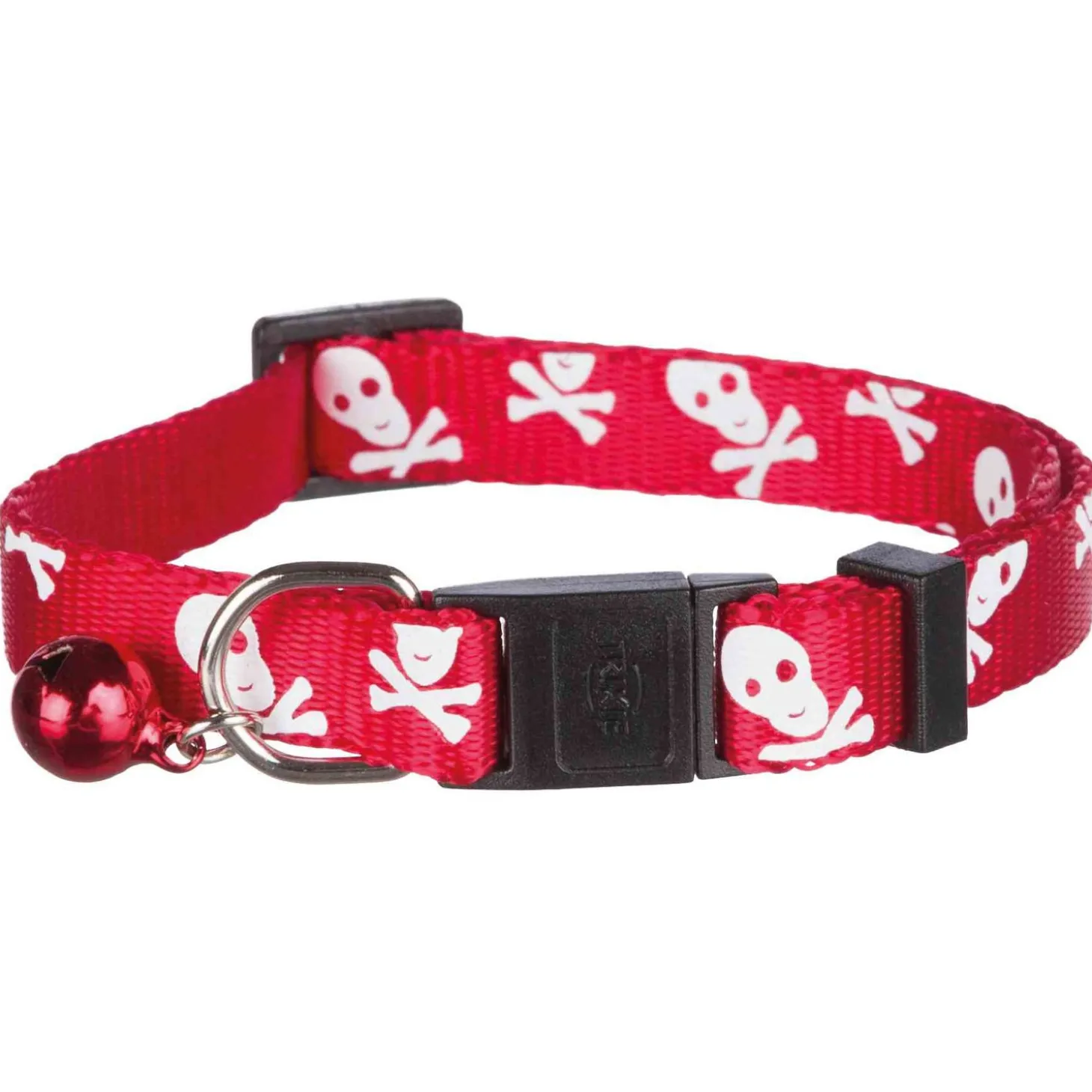 De Kittenhalsband van Trixie is een fijne halsband voor kittens en kleine katten. Het bandje is gemaakt van nylon en zit erg comfortabel. Je kan dit halsbandje traploos verstellen. De halsband heeft een stoer doodshoofdpatroon.