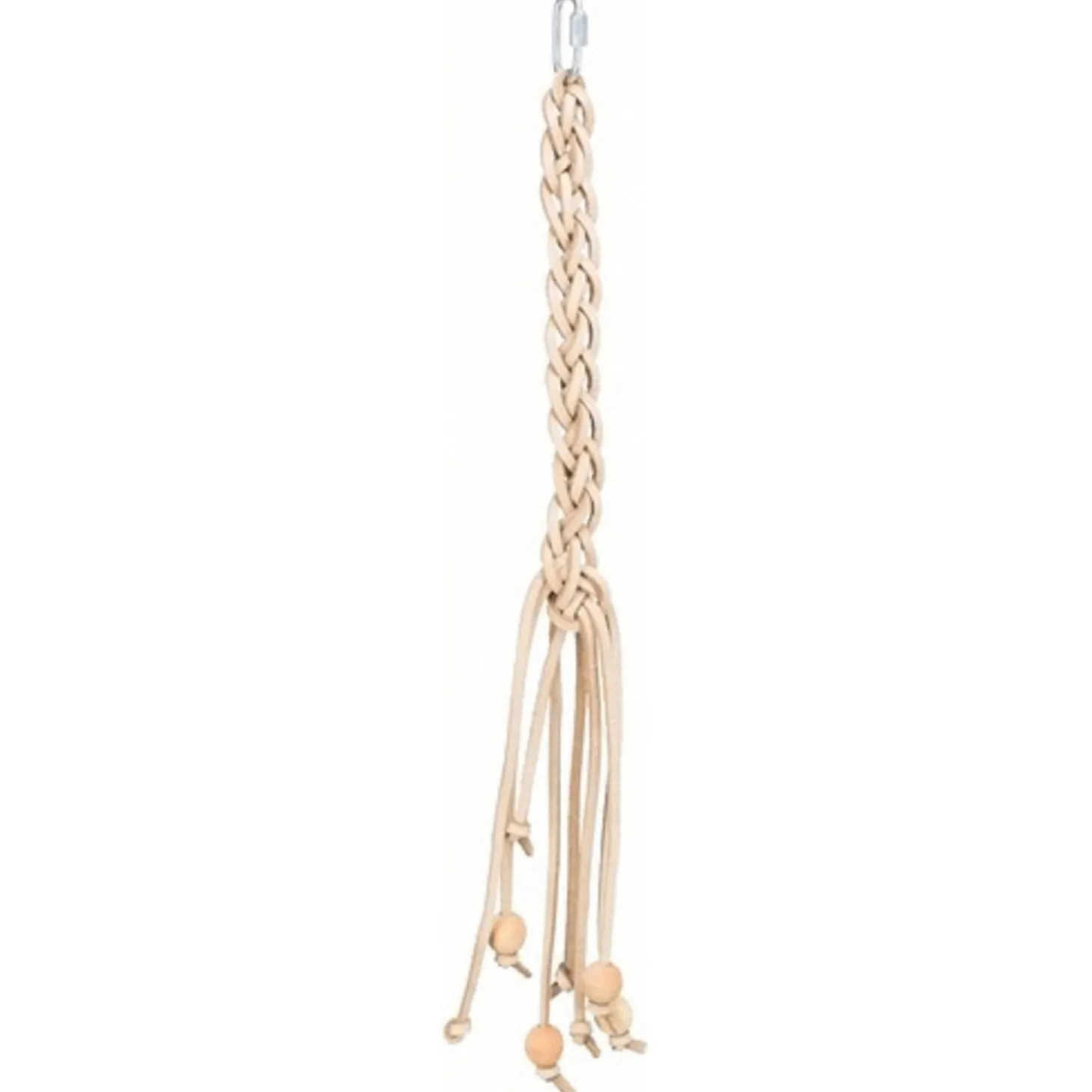 Het Trixie natuurspeelgoed leren veters met houten kralen naturel 50cm is speelgoed voor grote vogels en papegaaien dat verveling tegengaat. Slopen, klimmen en spelen zijn natuurlijke behoeften voor vogels. Met dit natuurlijke vogelspeelgoed kunnen jouw vogels op een veilige manier spelen en slopen.