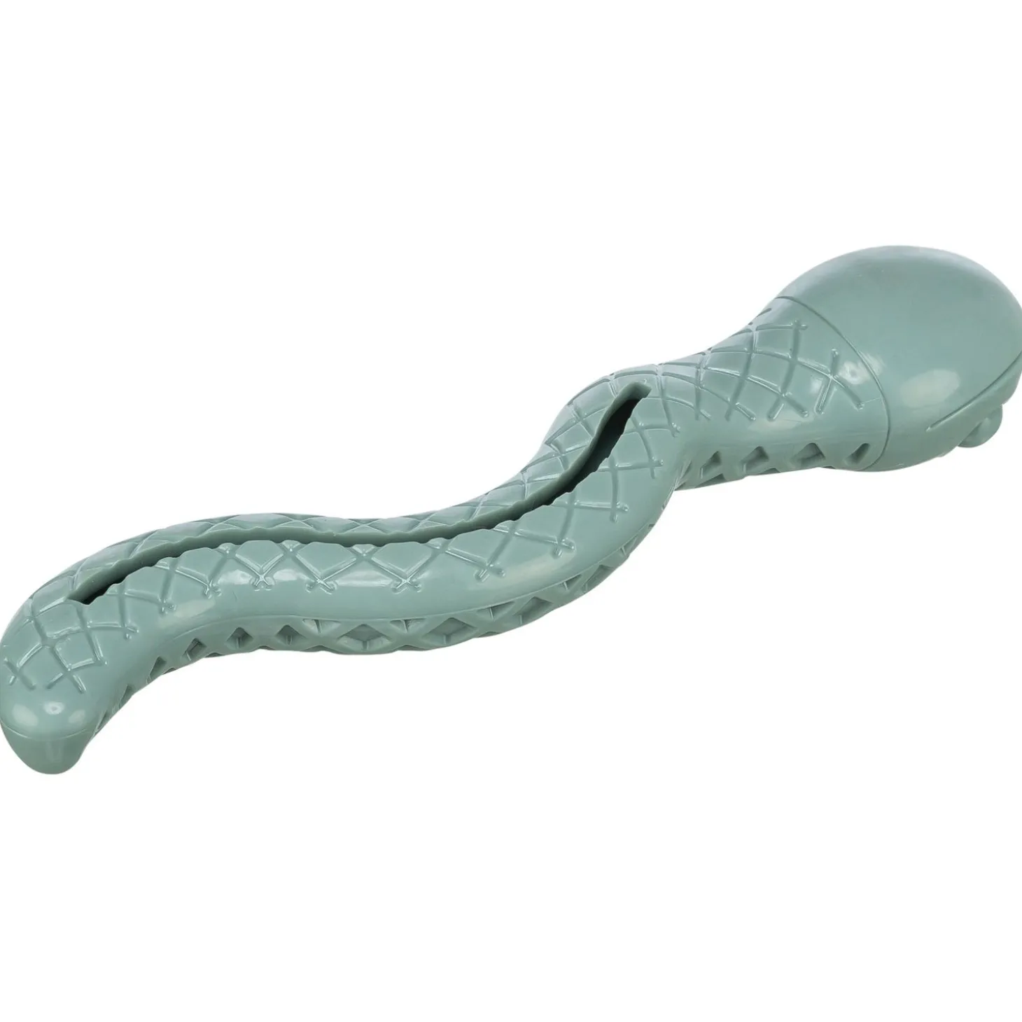Deze stevige slang van thermoplastisch rubber (TPR) is voorzien van een spleetvormige opening aan de onderzijde, waar je allerlei lekkernijen in kunt verstoppen. Denk aan leverworst, brokjes of kleine hondensnoepjes. Het maakt snacken niet alleen leuker, maar ook uitdagender!