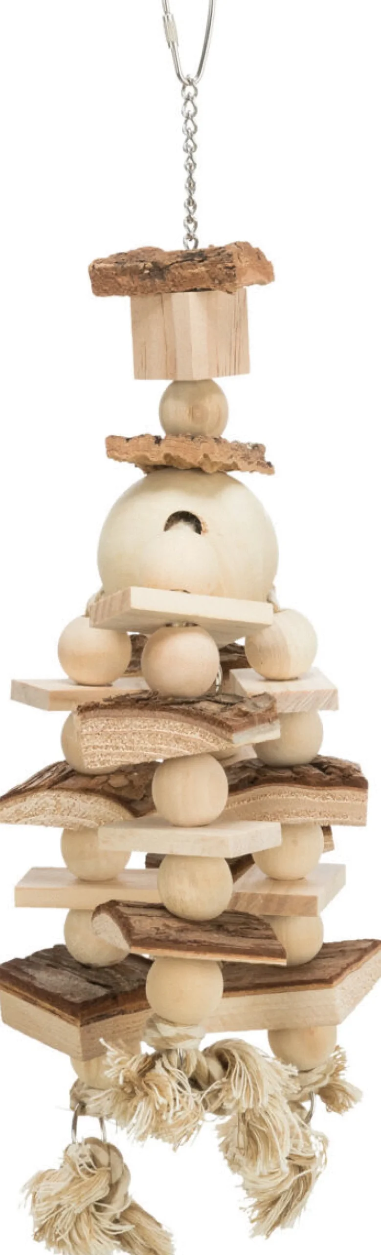 - Speelgoed aan ketting, m. touw & kralen, hout/kurk