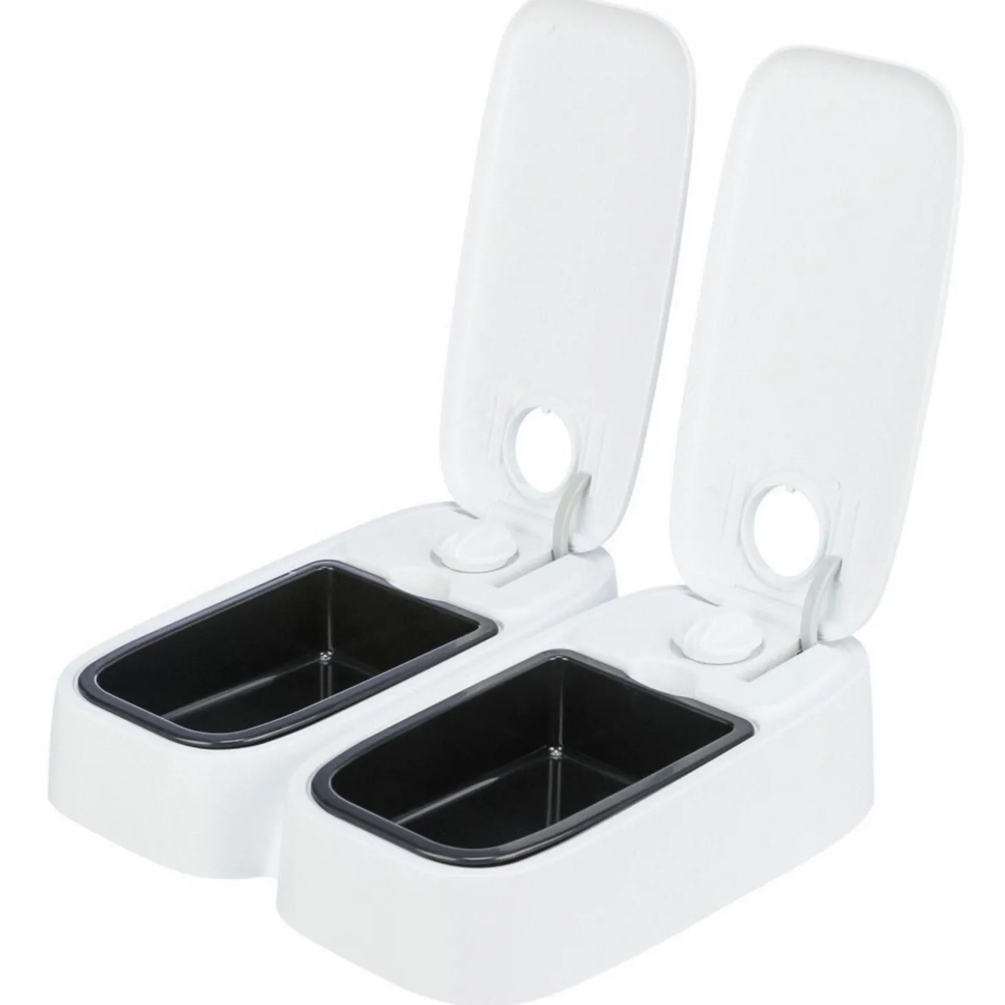 Deze voerbak voor de hond of kat is ideaal voor als u bijvoorbeeld niet thuis bent. Deze automatische voerbak voor twee maaltijden kunt u zelf instellen tot wel 48 uur van tevoren!