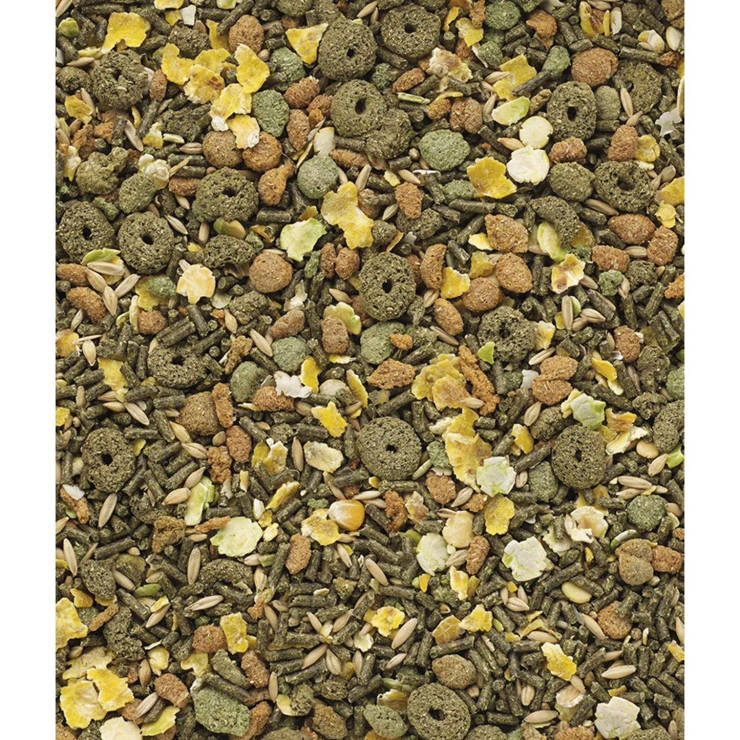 Belangrijk is om hooi als basis te verstrekken, daarnaast voer je deze korrel en groenten.