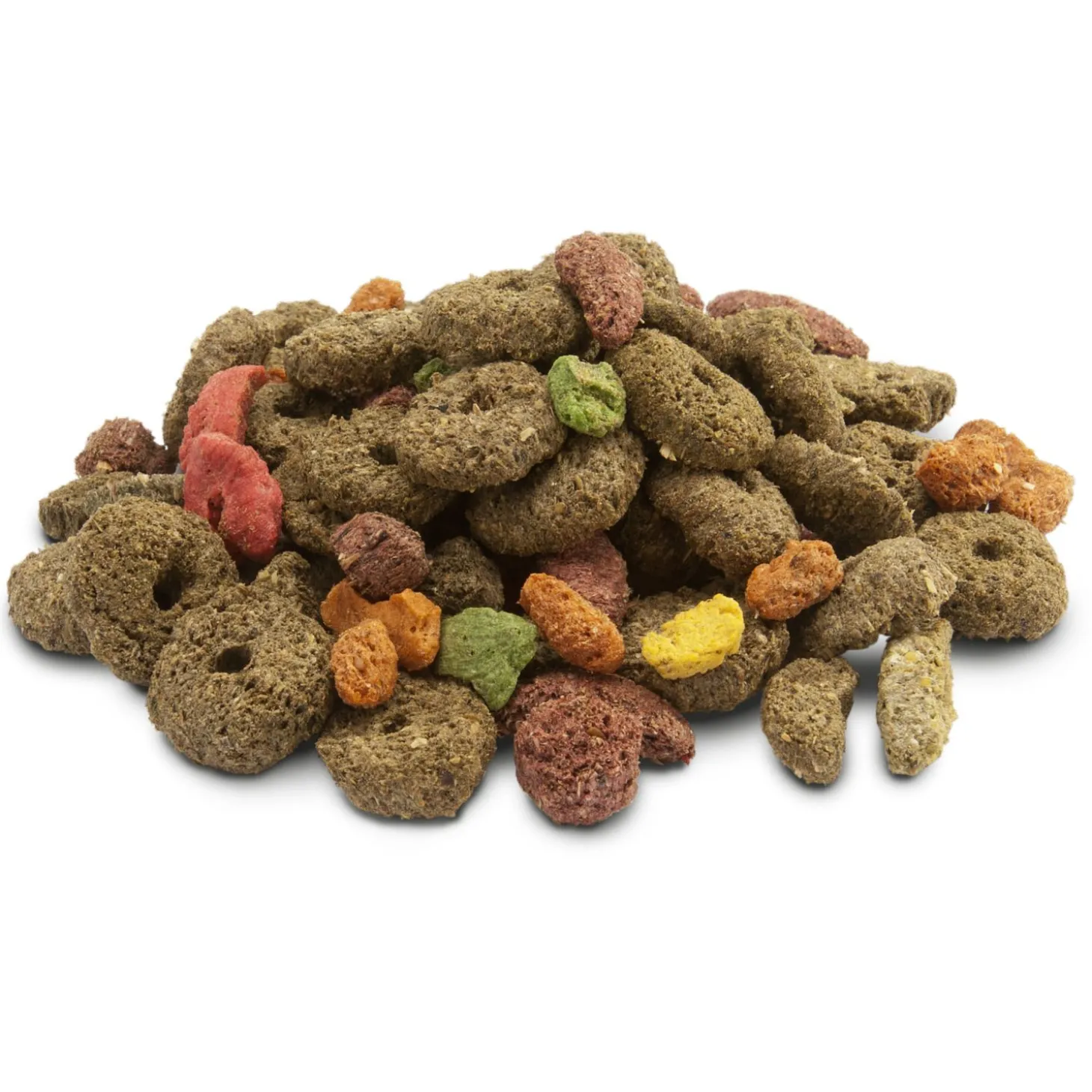 | Samenstelling | tarwegries | speltdoppen | tarwe | luzerne | tarwevoerbloem | gebroken mais | luzerne-eiwitconcentraat | tarweglutenvoer | zonnebloemzaadmeel | lijnzaad | gebroken erwten | haverdoppen | calciummagnesiumcarbonaat | sojabonendoppen | mais | natriumchloride | geraffineerde kokosolie | fructo-oligosachariden | monocalciumfosfaat | getoaste sojabonen | gedroogde wortels | look | oregano | thijm | marjolein | sojameel | munt | curcuma |
