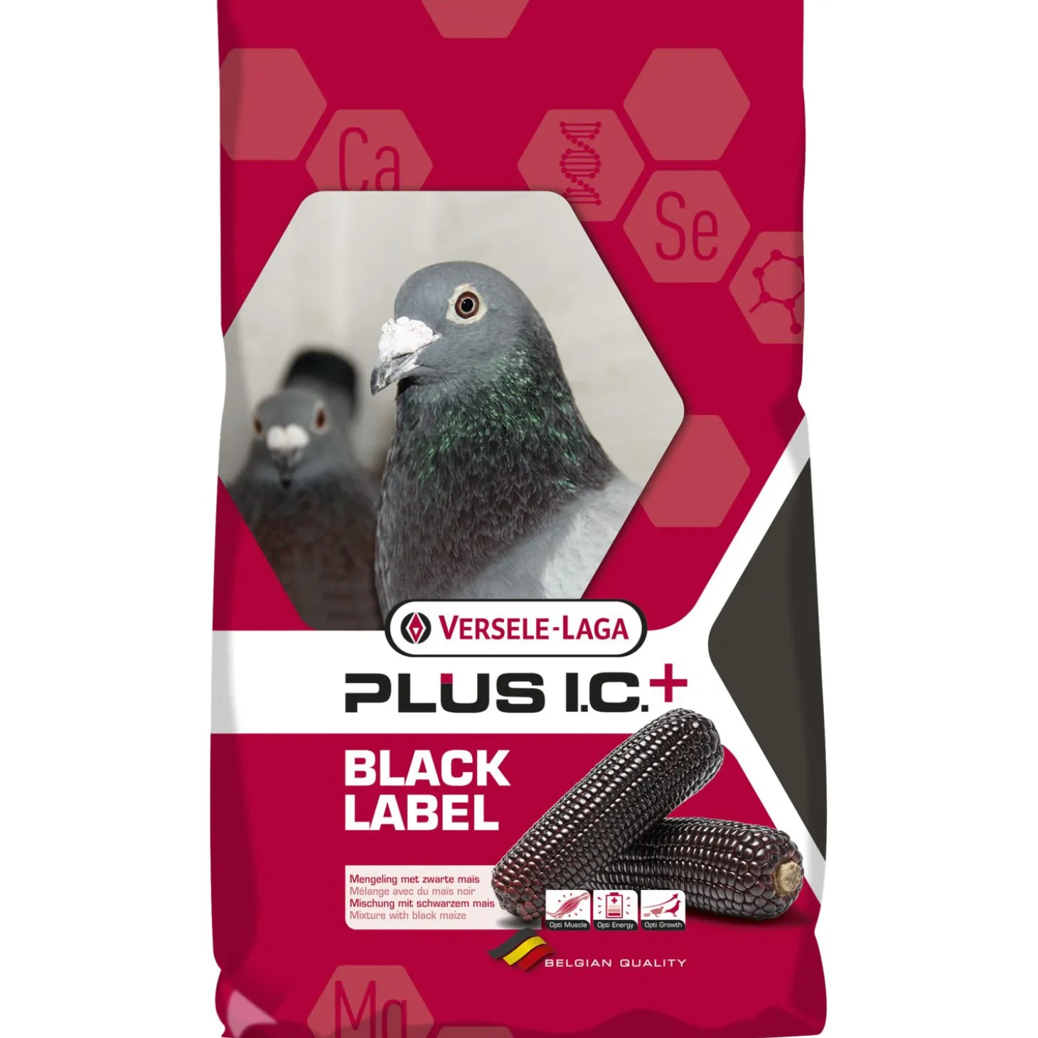 | Samenstelling | zwarte maïs 8% | premium cribsmaïs 5% | kleine cribsmaïs 5% | getoaste sojabonen 5% | dun peas 5% | gele erwten 3% | grote groene erwten 3% | kleine groene erwten 9% | katjang idjoe 2% | witte duiventarwe 14% | witte dari 4% | milo 4% | cardy 4% | duivengerst 7% | gepelde gerst 3% | gepelde haver 1% | kleine gestreepte zonnebloempitten 2% | kanariezaad 1% | gele millet 1% | bruin lijnzaad 2% | raapzaad 1,5% | zwart koolzaad 1,5% | mariadistelzaad 1,5% | wilde zaden 1,5% | geëxtrudeerde korrel I.C.�?� 6% |