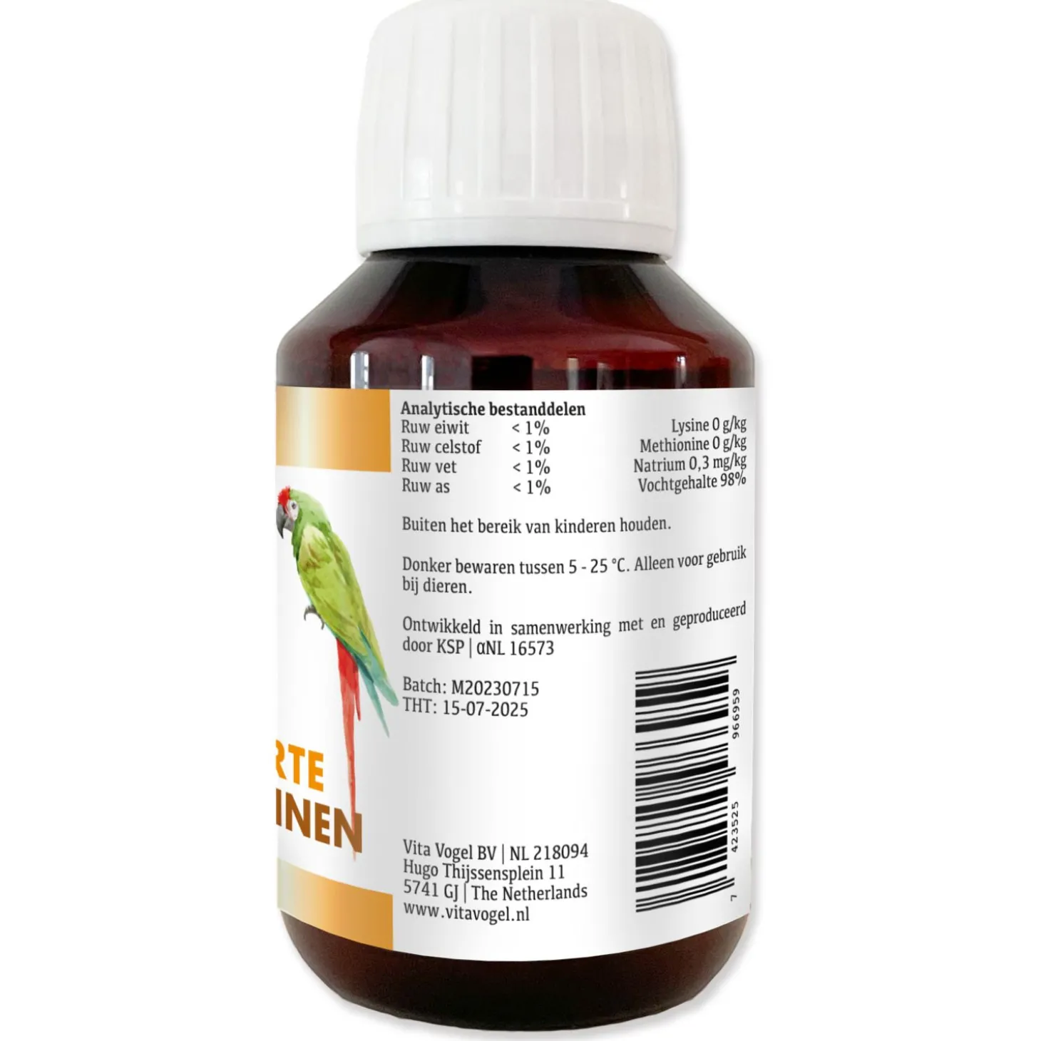 Deze vitaminecocktail bevat een indrukwekkende lijst van vitamines en voedingsstoffen, zoals vitamine A, B1, B2, B6, B12, C, E, K, D3, biotine, foliumzuur, inositol, niacinamide en pantotheenzuur. Alles wat je gevederde vriend nodig heeft om gezond te blijven!