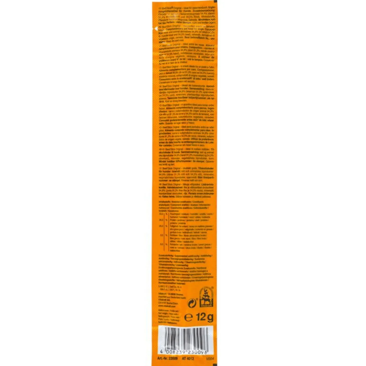 Pure verwennerij zijn de Beefsticks van Vitakraft. Door de specifiek gekozen ingrediënten die allen van topkwaliteit zijn, de verrukkelijke geuren het zeer hoge vleesgehalte en de unieke smaak bouwt je hond direct een feestje. De Beefstick heeft een suikervrij receptuur en bevat geen kleurstoffen of smaakversterkers. Ze zijn gewoon écht lekker!