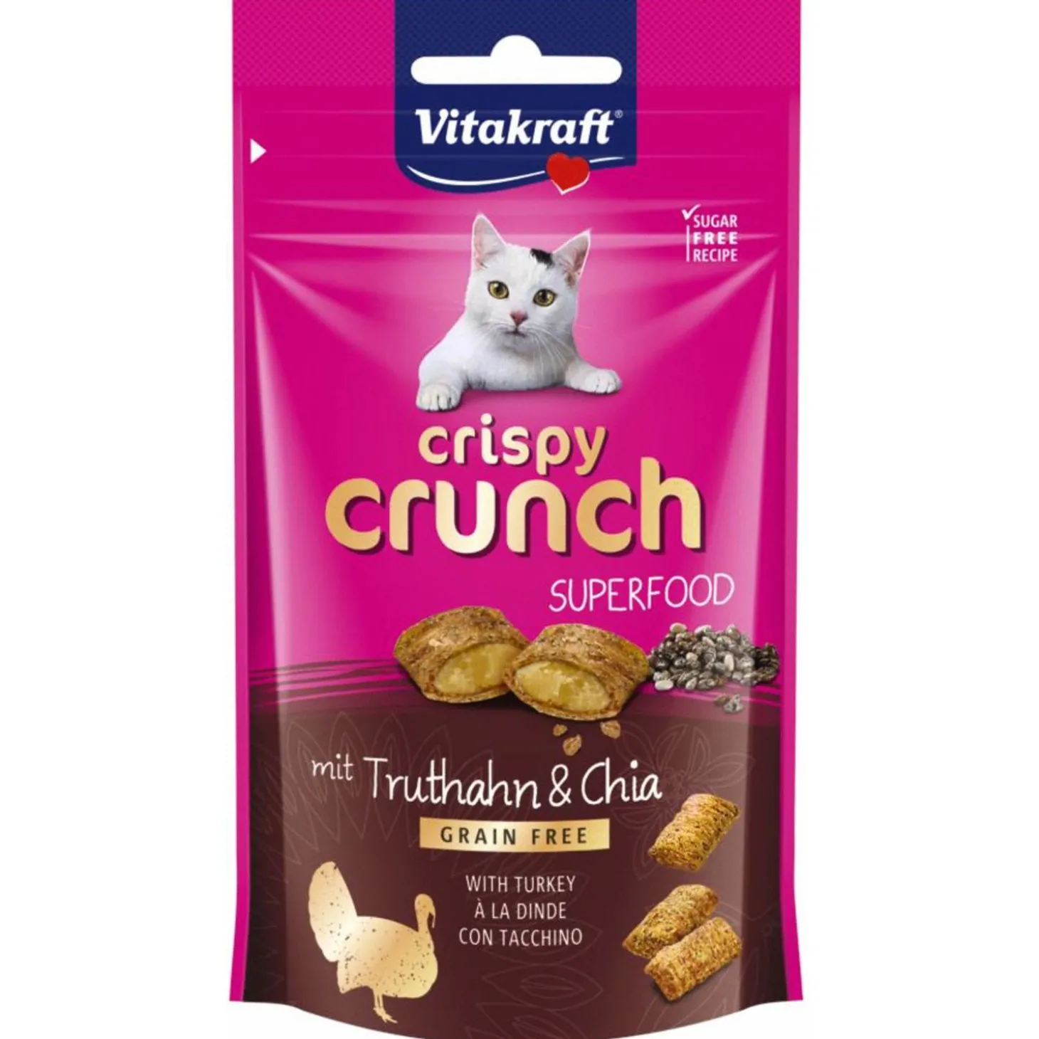 Deze onweerstaanbare Crispy Crunch snackjes van Vitakraft met een heerlijke extra smaak, daar likt je kat zijn bek voor af! Ideaal als een kleine beloning of tussendoortje. Bereid volgens een suikervrij receptuur en verpakt in een hersluitbare verpakking!