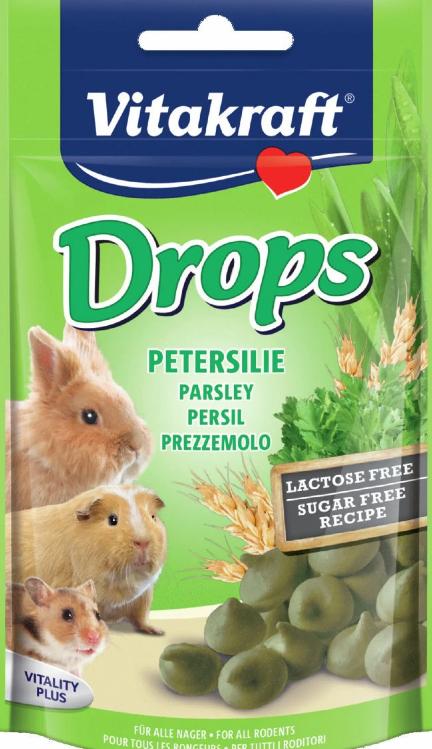 Eén van de meest bekende snackjes voor knagers zijn de Drops van Vitakraft wel. Heerlijke zachte snoepjes met lekkere peterselie of rode biet. De snacks zijn lactosevrij en zeer goed verteerbaar, daarbij geschikt voor alle konijn en knaagdieren. De drops zijn bereid volgens een suikervrij receptuur en hebben geen kunstmatige kleurstoffen, smaakversterkers of conserveringsmiddelen. Verpakt in een hersluitbaar zakje.