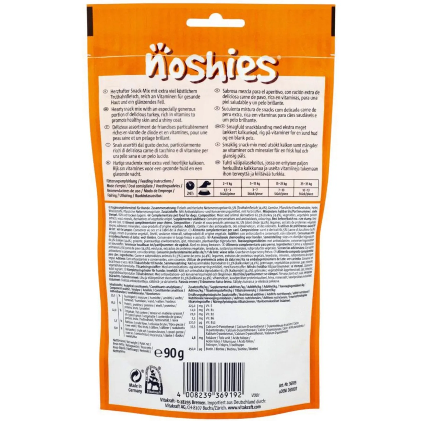 Noshies van Vitakraft is verpakt in 90 gram