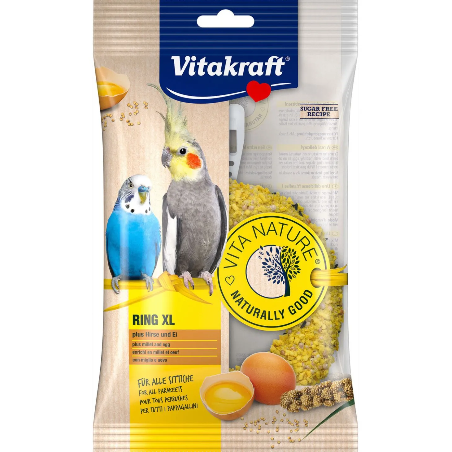 | Samenstelling | Samenstelling: Granen* (o.a. gierst 44,6%), Plantaardige bijproducten, Eieren en eiproducten** (compleet ei 2,4%), mineralen, zaden*, Honing*. *=Natuurlijke ingrediënten |