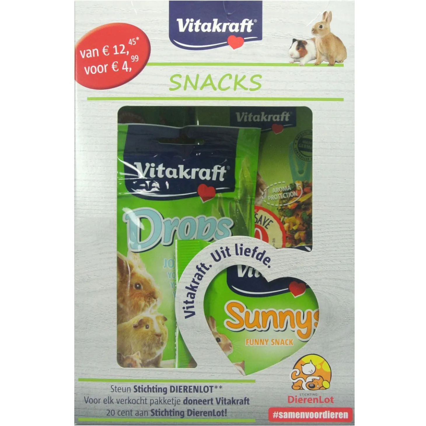 | Samenstelling | 1x Kräcker groente en bieten 2in1, 1x Drops yoghurt 75 g, 1x Sunny’s 50 g, 1x Muffins banaan 18 g. 1x Donuts wortel 28 g |