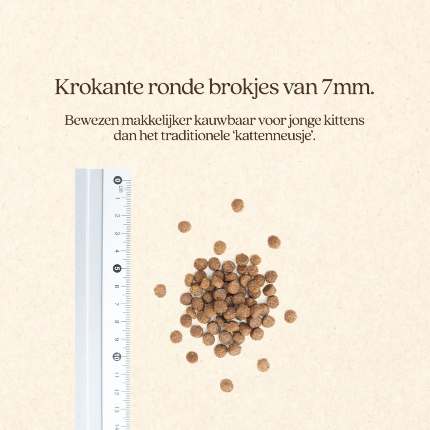 Geef je kitten de beste start met VITALstyle Kitten, een 100% natuurlijke kattenbrok die alles bevat wat een opgroeiende kitten nodig heeft. Deze complete voeding heeft een hoog gehalte aan eiwitten, vetten, calcium, fosfor en mineralen, speciaal afgestemd op de groei en ontwikkeling van jonge katten. De unieke kruidenmix en zalmolie ondersteunen niet alleen de spijsvertering en weerstand, maar dragen ook bij aan een gezonde huid, vacht en sterke botten. Perfect voor een energieke, gezonde kitten die opgroeit tot een sterke, volwassen kat!