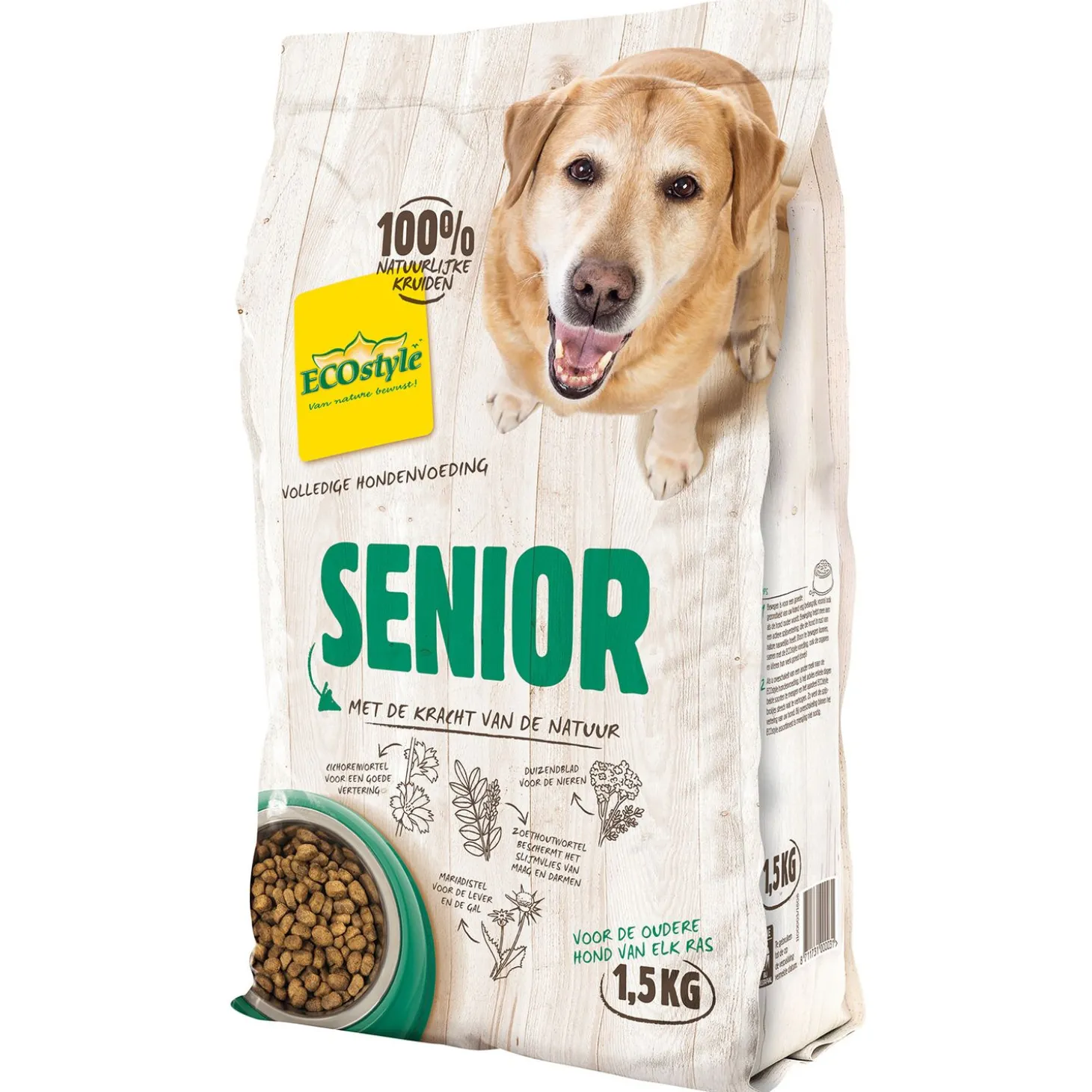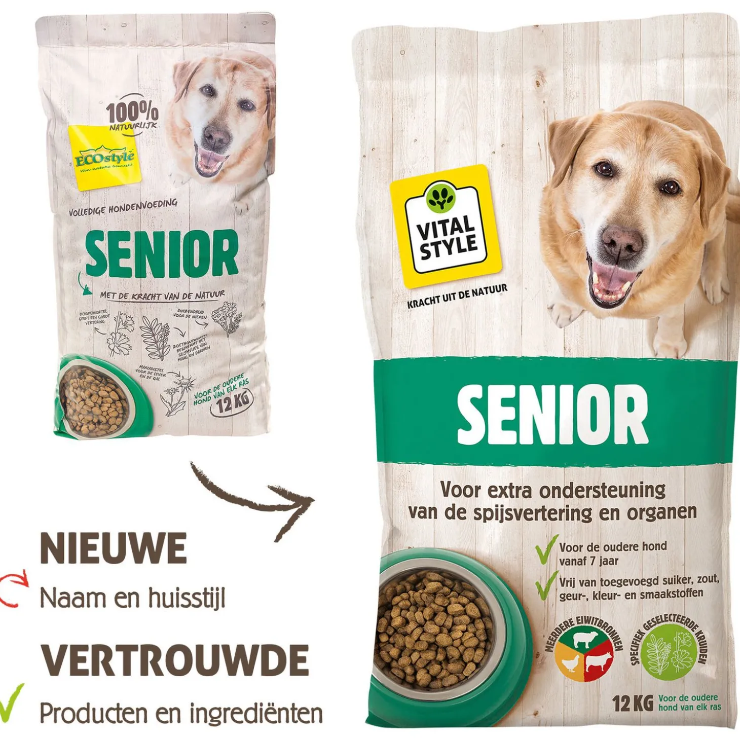 SENIOR hondenvoeding verkrijgbaar in 1,5 kg en 12 kg.