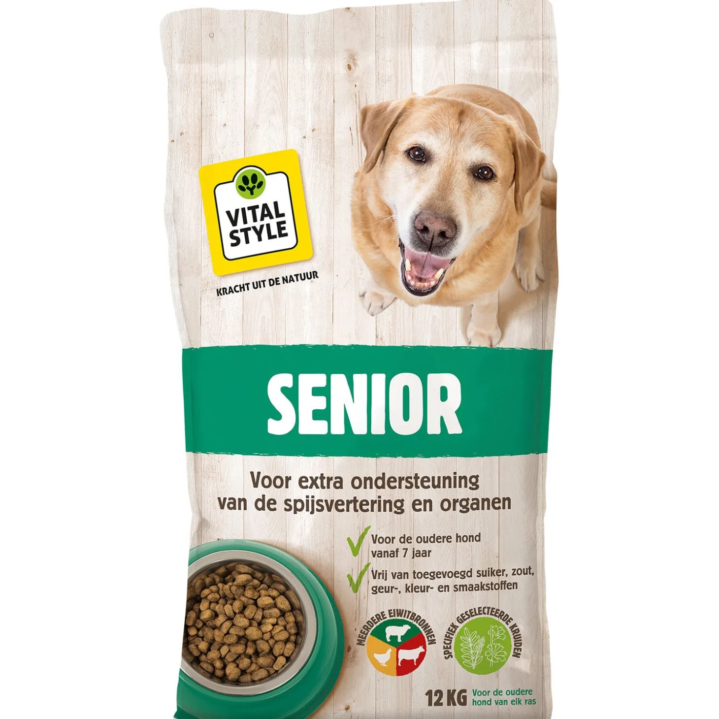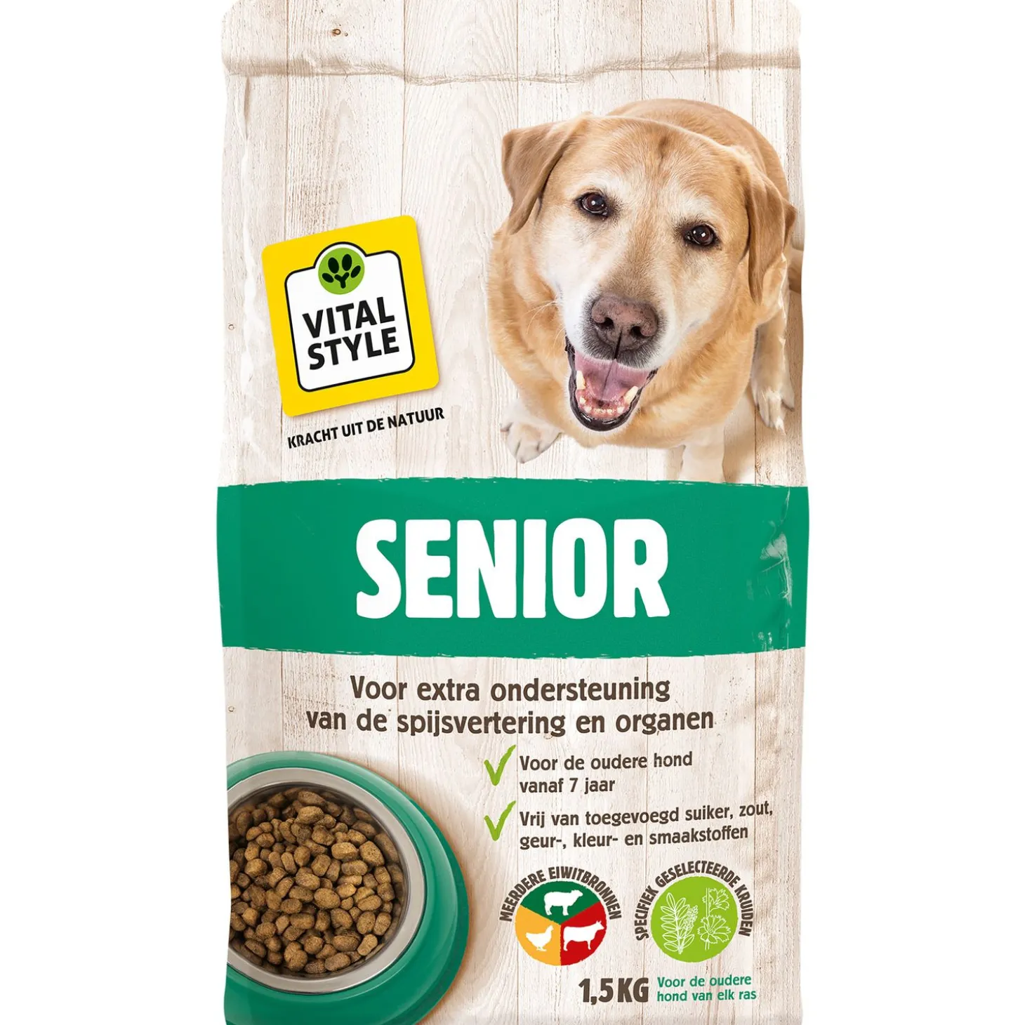 SENIOR van VITALstyle is een heerlijke voeding voor je oudere hond. Speciale ingrediënten en kruiden houden je hond vitaal en zorgen voor een optimale spijsvertering.