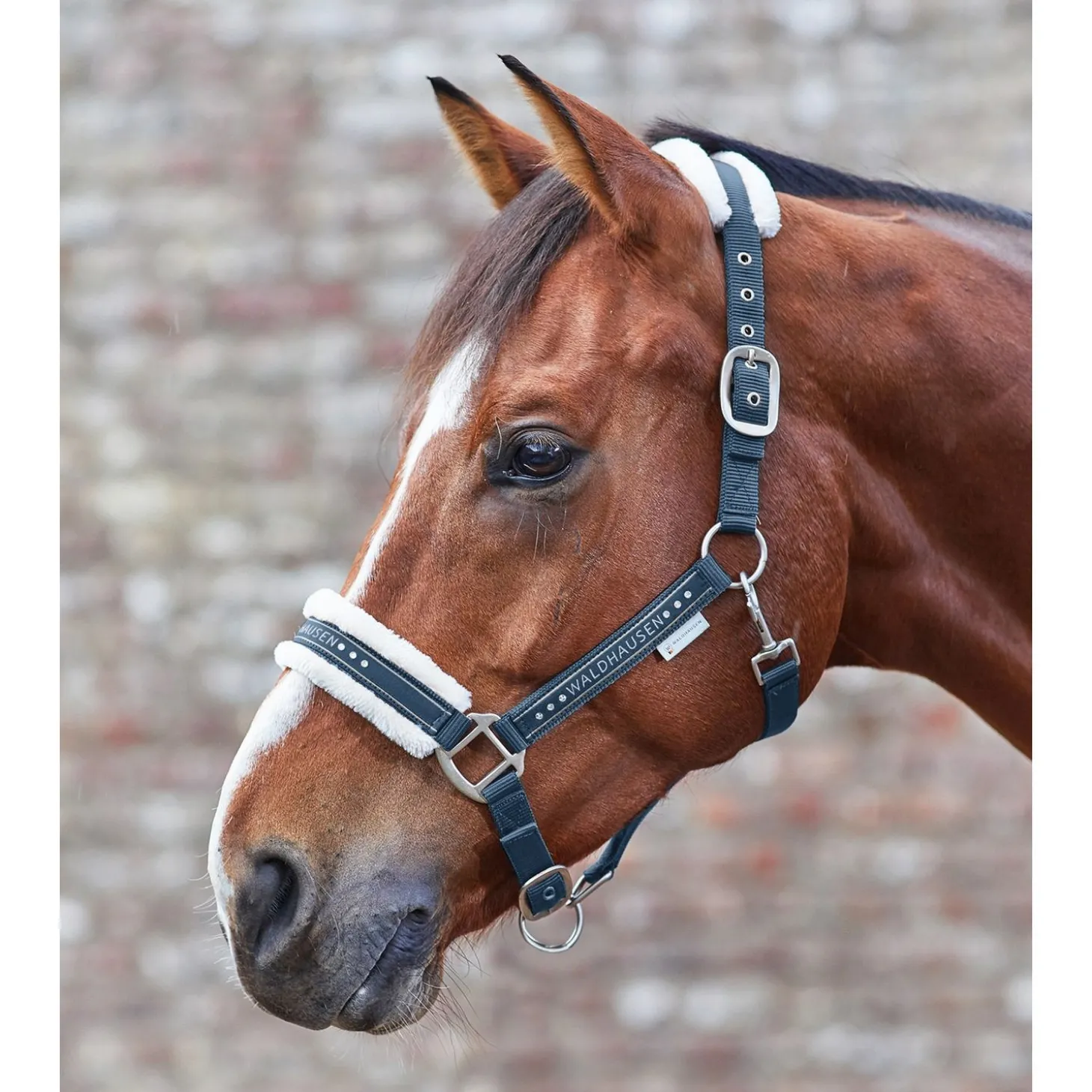 Luxe uitgevoerd halster met zacht synthetisch bont op de drukplekken en subtiele steentjes op de neusband. Verstelbaar op de kinband en het kopstuk.