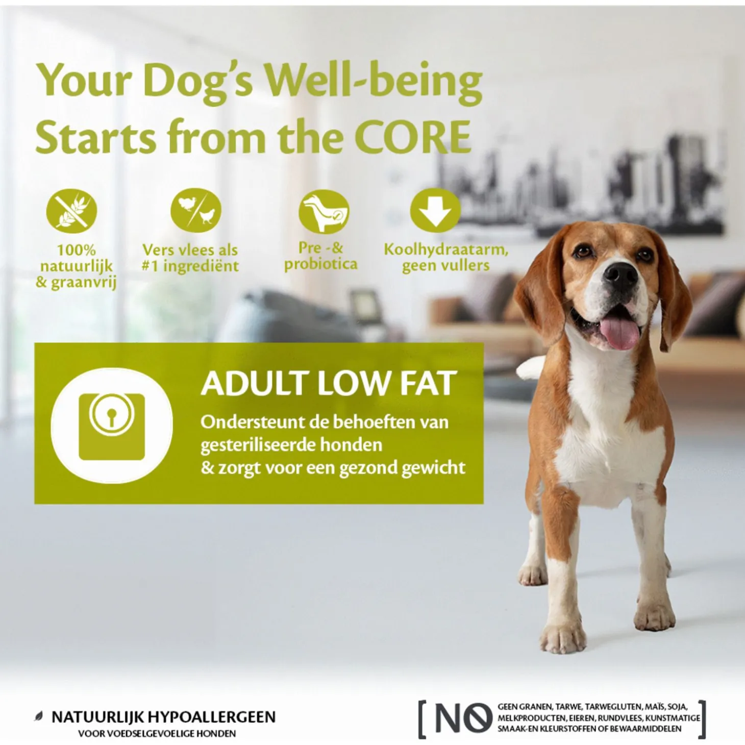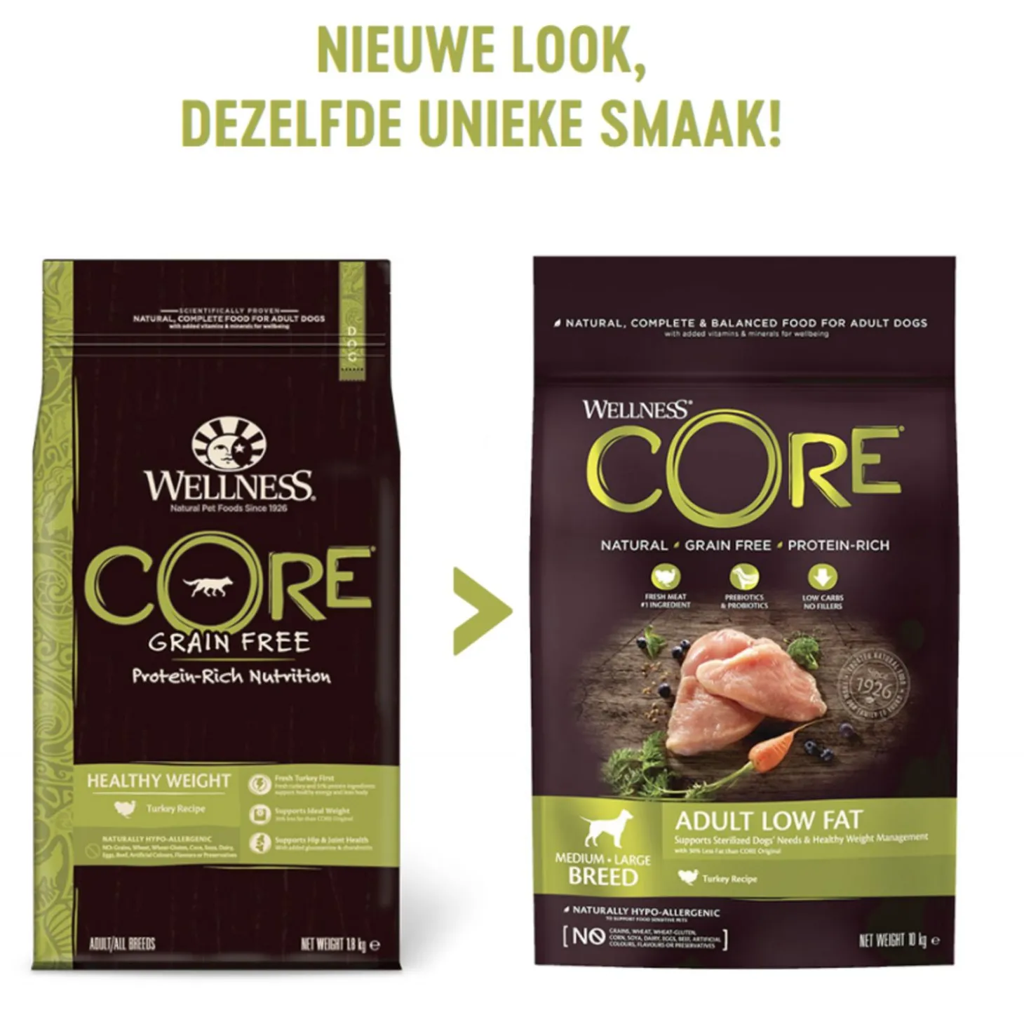 Bij Wellness Core is men ervan overtuigd dat het welzijn van je hond begint bij de juiste voeding. De recepten zijn gemaakt voor de carnivoor in je hond, zo wordt een evenwichtige voeding gecreëerd boordevol eiwitten van hoge kwaliteit, zonder granen en vulstoffen. Zo dragen alle Wellness Core-voedingen bij aan een optimale gezondheid, een gezond gewicht en een lang en gelukkig leven.