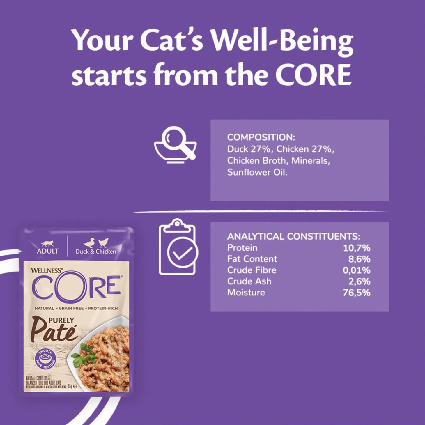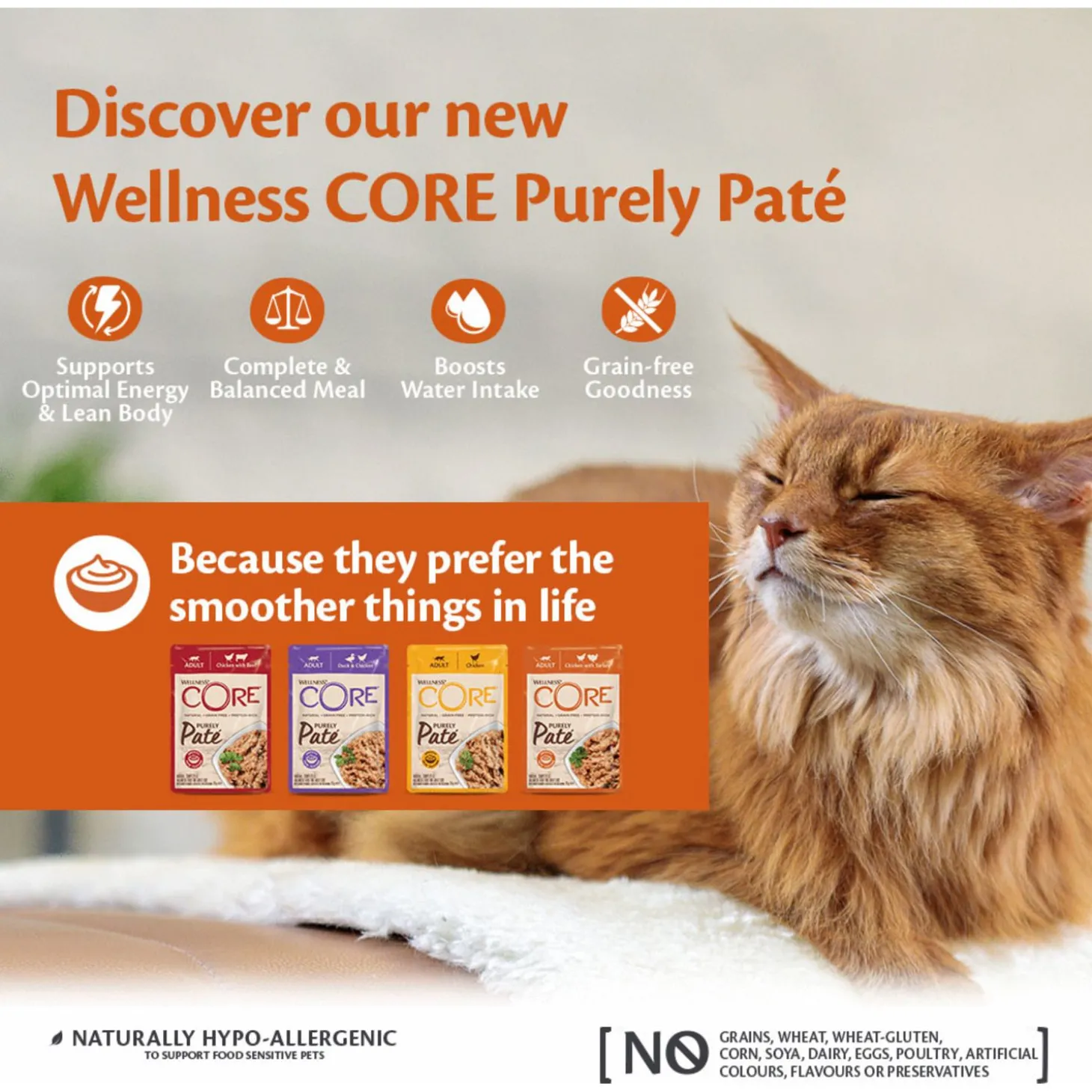 Wellness Core Purely paté is verkrijgbaar in verschillende smaken.