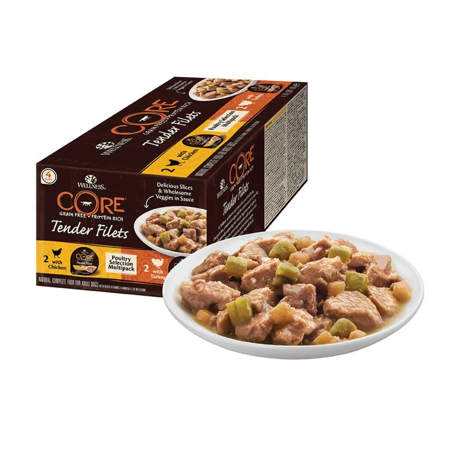 Volledige, evenwichtige en nauurlijke voeding Wellness Core Tender filets is een volledige en evenwichtige maaltijd die rijk is aan proteinen.