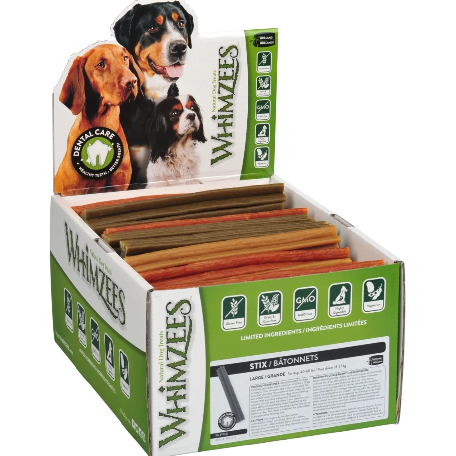 Een gezonde hond heeft een gezond gebit nodig. Het gebit bestaat uit kleine snijtanden, scherpe hoektanden en sterke kiezen. Een gebit dat niet wordt verzorgd kan lijden tot tandplak, tandsteen en ontstekingen aan het tandvlees. Met Whimzees Kauwsnacks Stix zorg je voor een gezond gebit en krijgt je hond een verantwoord tussendoortje.