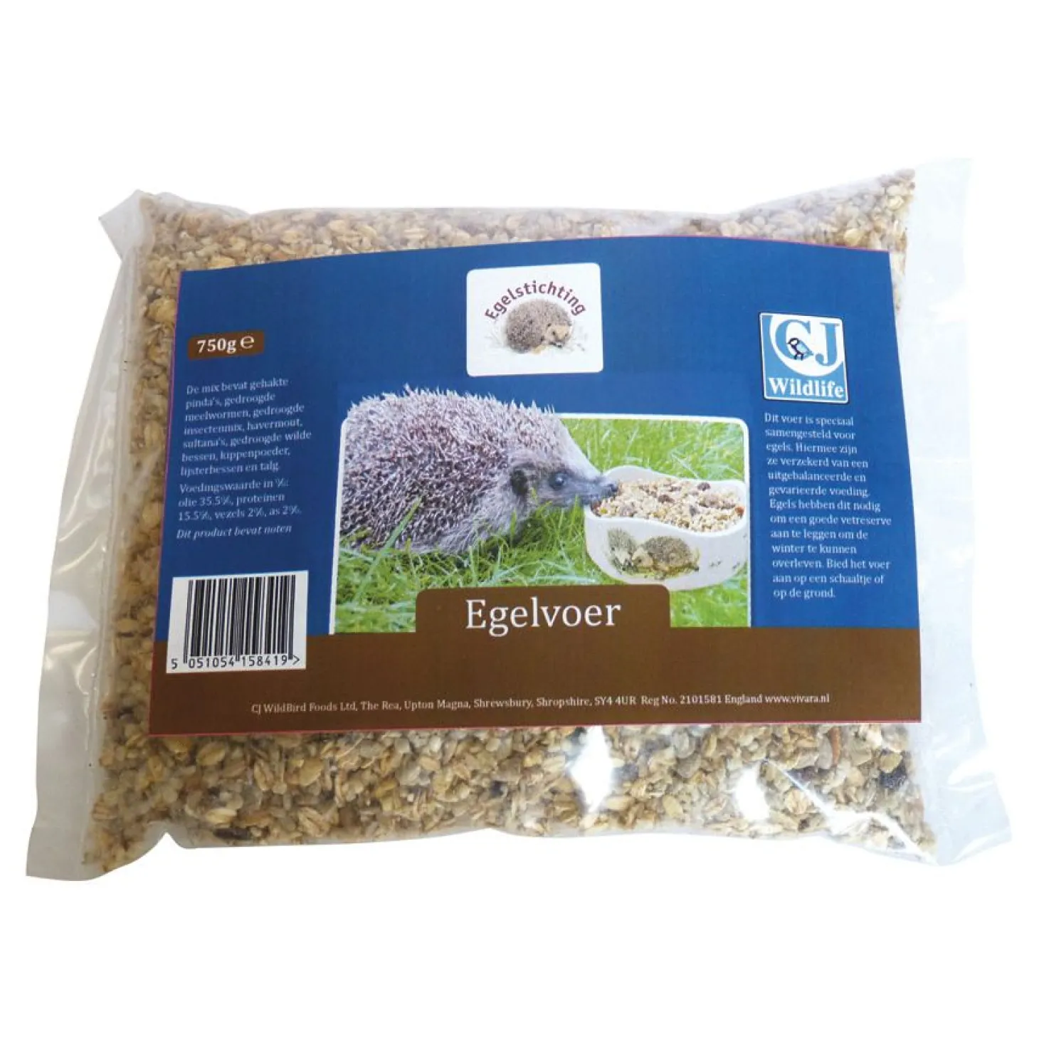 | Samenstelling | Gewicht: 750 g. ingrediënten: Premium egelvoer bevat onder meer noten, rozijnen, honing, insecten, stukjes gedroogd vlees, maïs, garnalen, plantaardige eiwitextracten, oliën en vetten. Formaat: 75 gram. |