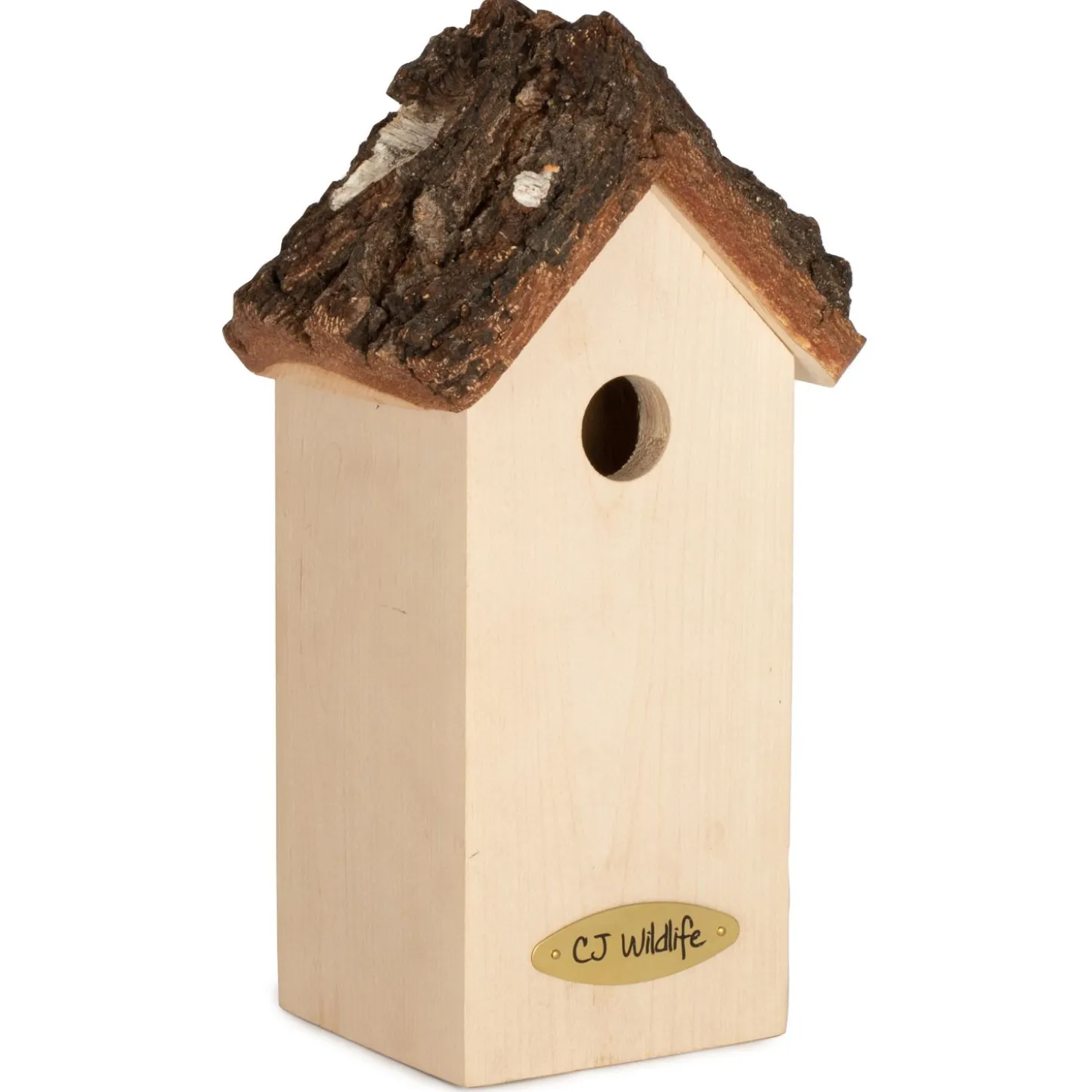- Gemaakt van FSC-gecertificeerd hout met schorsdak in gevelstijl Opening is 28mm, geschikt voor verschillende soorten vogelsWandmontage