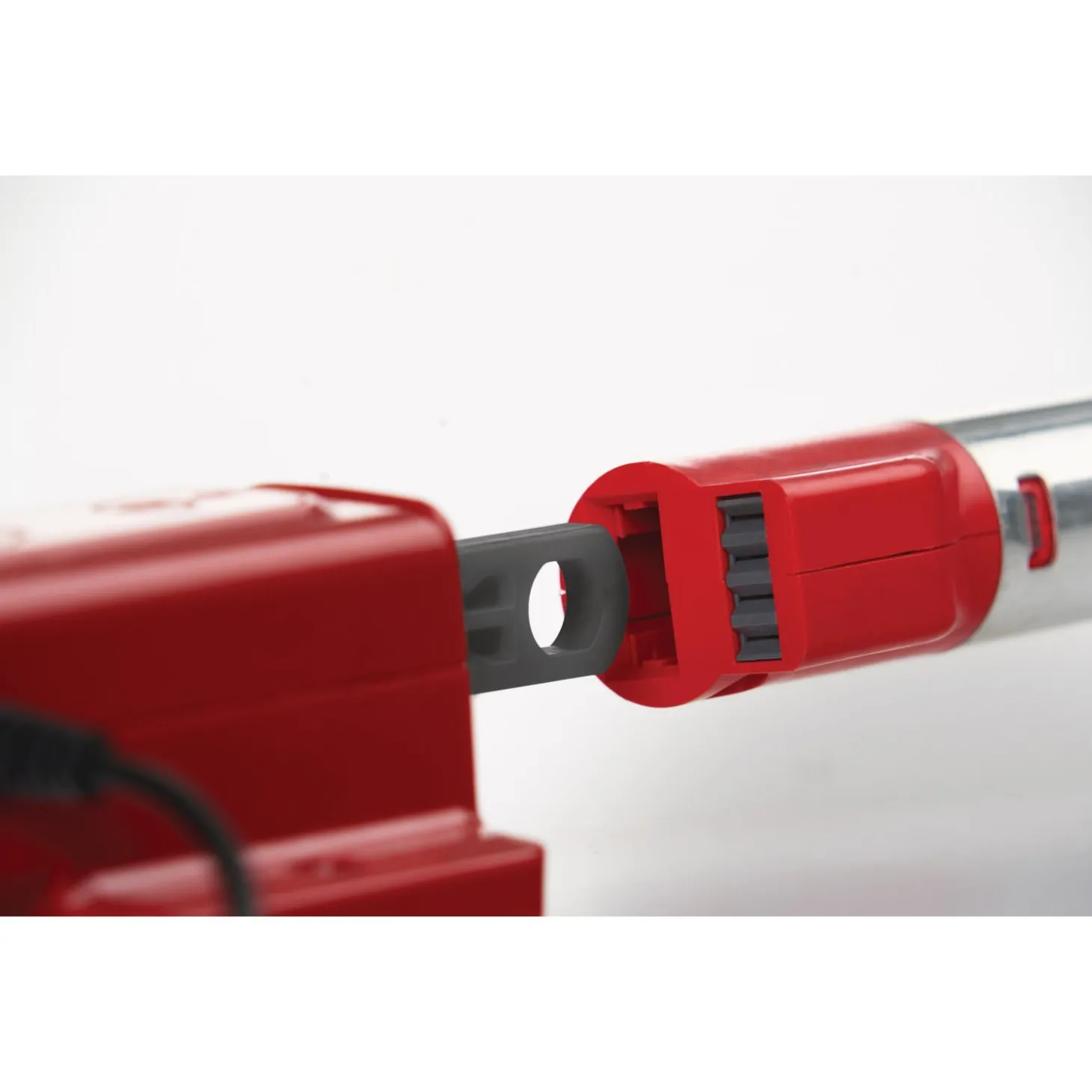 De Wolf-Garten Snellader is rood en grijs van kleur.
