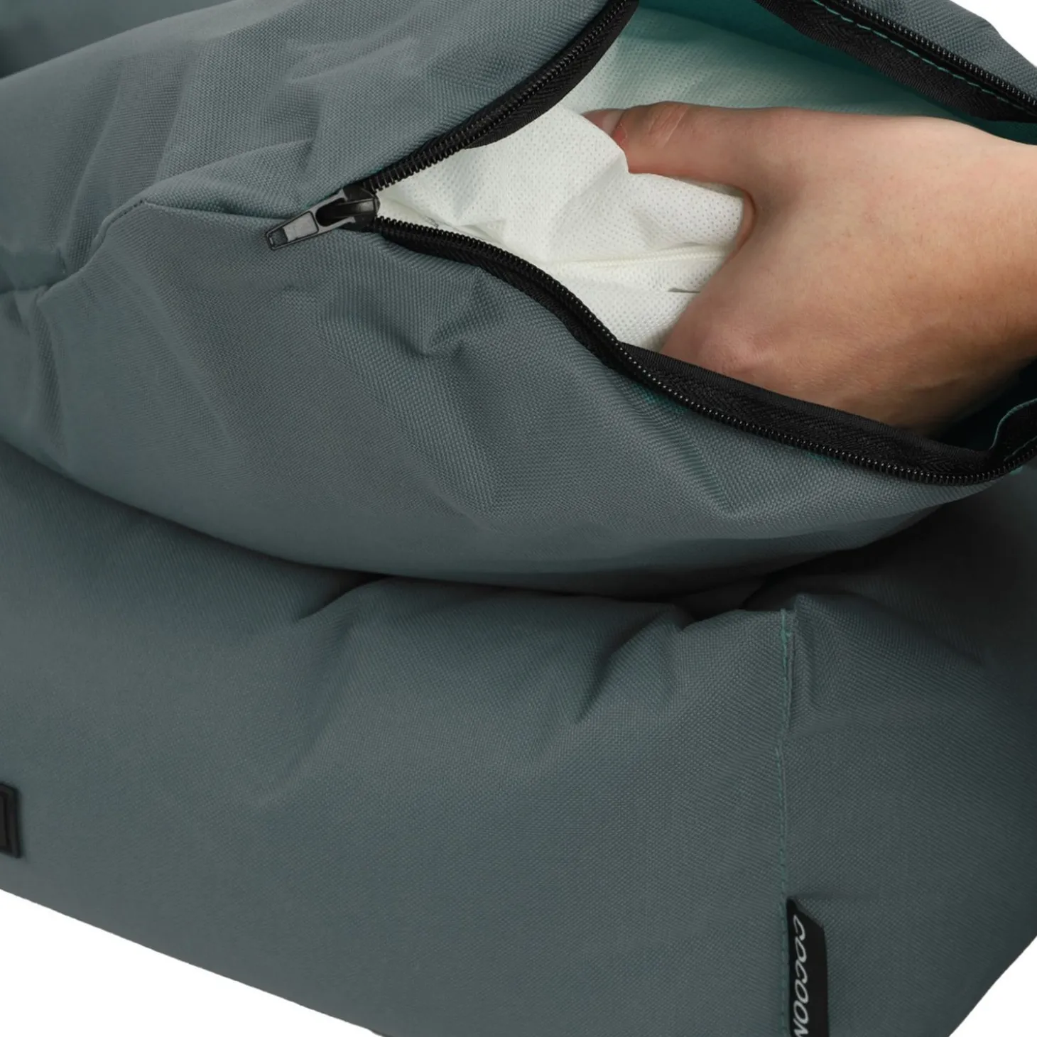 De hondenmand is gemaakt van 600D slijtvast polyester. Dit maakt de Cocoon sterk en waterbestendig. Je maakt de mand dan ook eenvoudig schoon met een vochtige doek en het materiaal houdt geen geurtjes vast. De hoes is trouwens volledig afneembaar en kan dus makkelijk gewassen worden. Tevens is het materiaal koel in de zomer en warm in de winter.