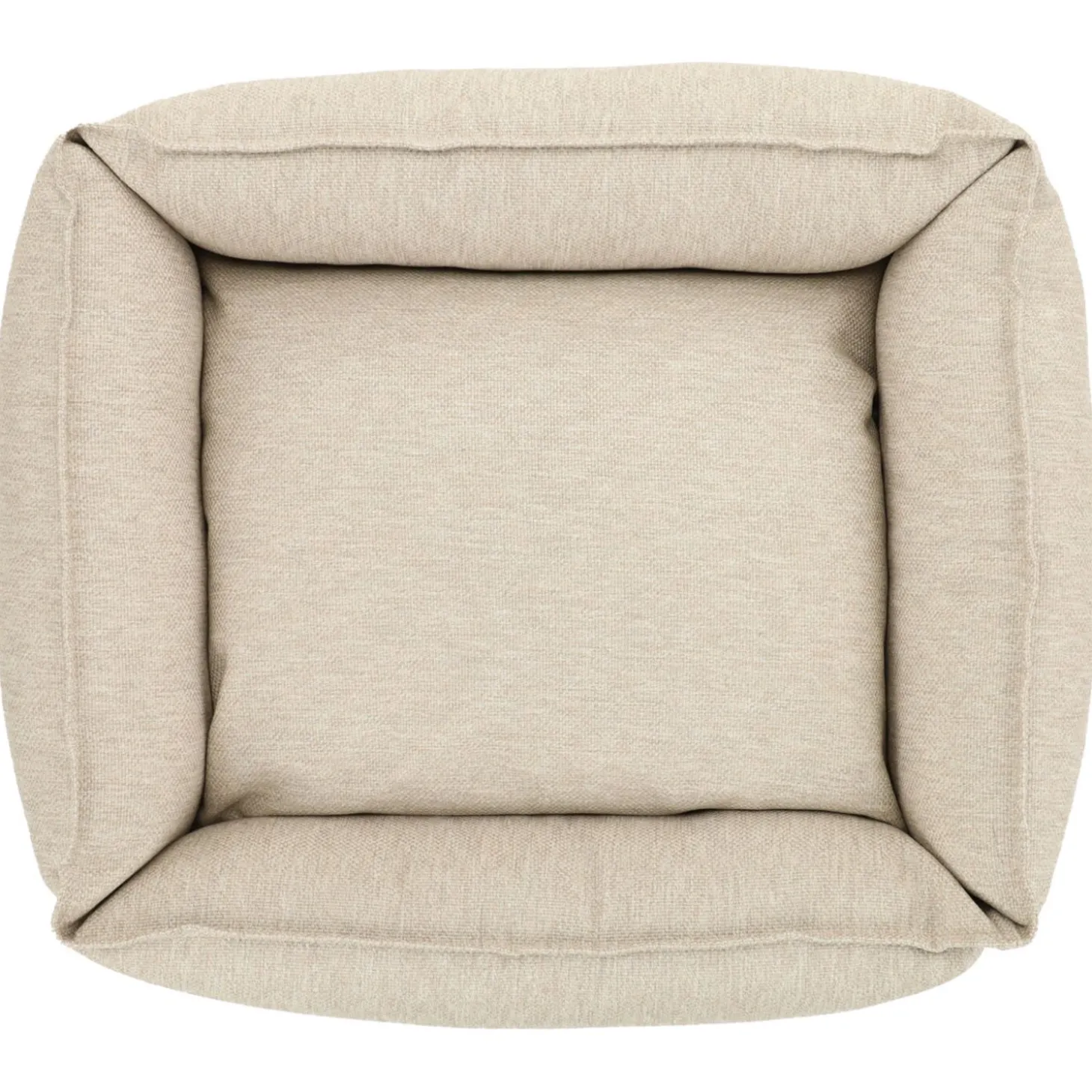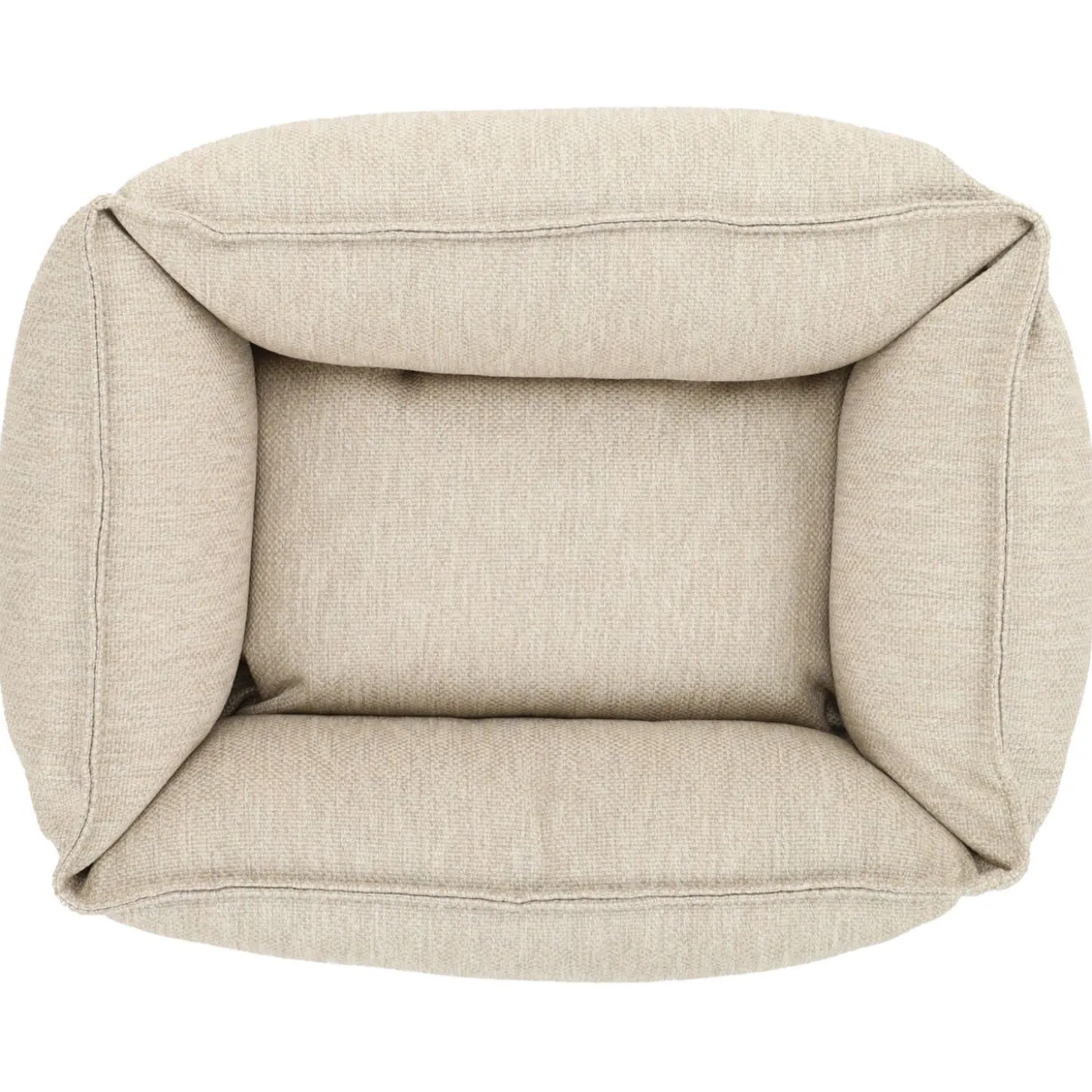 Deze variant heeft een warme lichtgrijze kleur met een merklabeltje tussen de naad. De mandvariant heeft opstaande randen waardoor je hond zich lekker knus kan oprollen in de mand, of hij kan zijn kop op de rand leggen, het ligt er maar net aan hoe jouw hond graag slaapt.